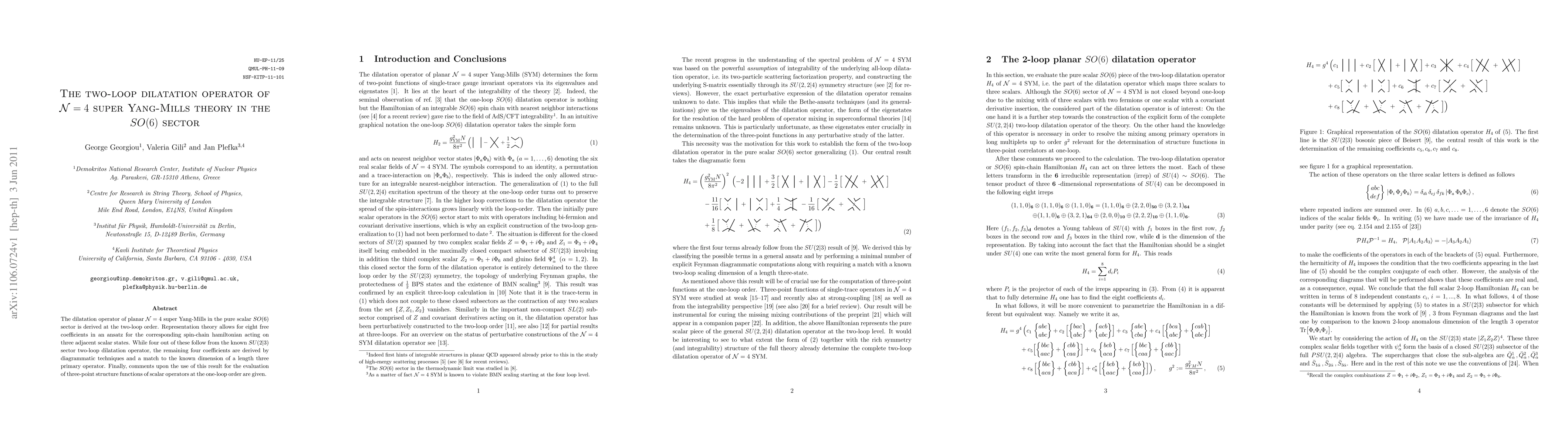 This paper derives the two-loop dilatation operator for the SO(6) sector in planar N=4 super Yang-Mills theory, determining eight coefficients through representation theory, diagrammatic techniques, and matching known dimensions. The results are also discussed in relation to evaluating one-loop three-point structure functions for scalar operators.