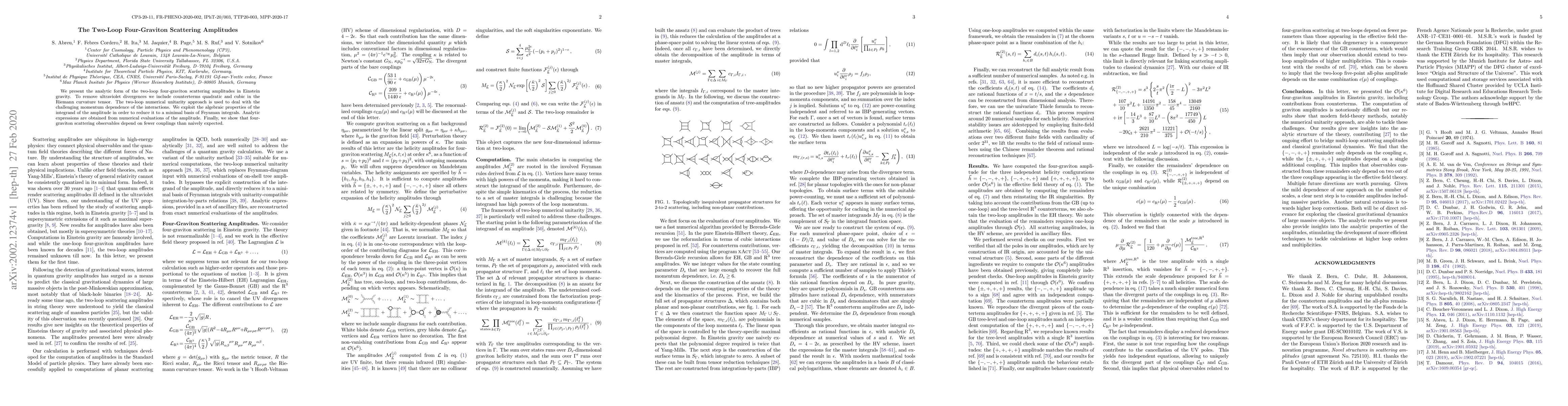 The paper provides analytic expressions for two-loop four-graviton scattering amplitudes in Einstein gravity, addressing ultraviolet divergences with appropriate counterterms. The numerical unitarity method and algebraic properties of the integrand are used to simplify the calculations and reveal that the scattering observables rely on fewer couplings than anticipated.