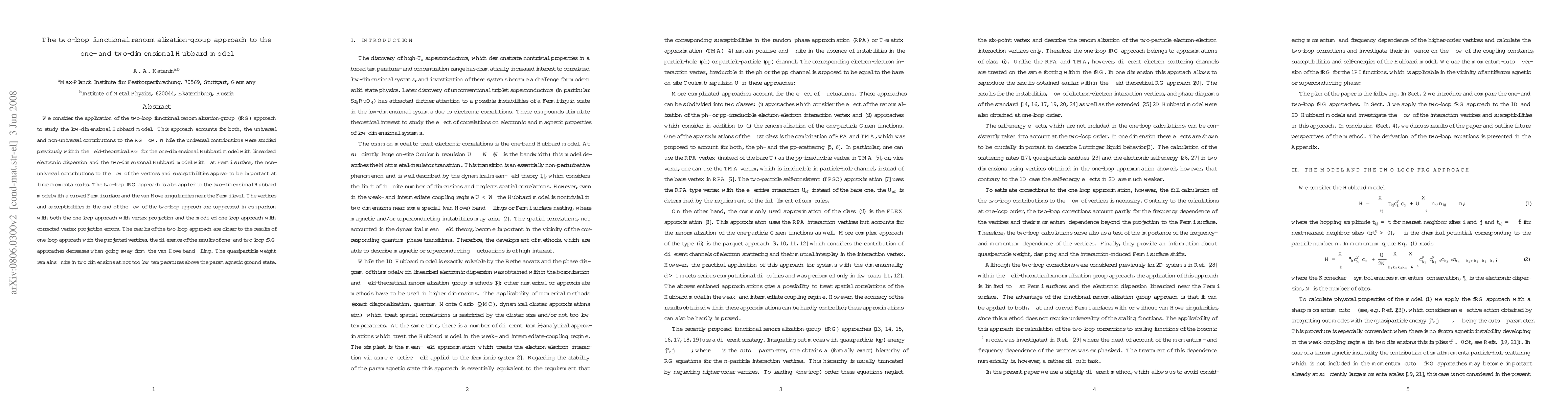 This paper applies the two-loop functional renormalization-group (fRG) approach to study the one- and two-dimensional Hubbard models, highlighting the importance of non-universal contributions. The results show that the two-loop approach suppresses vertices and susceptibilities more than one-loop methods, with the differences diminishing away from van Hove singularities.