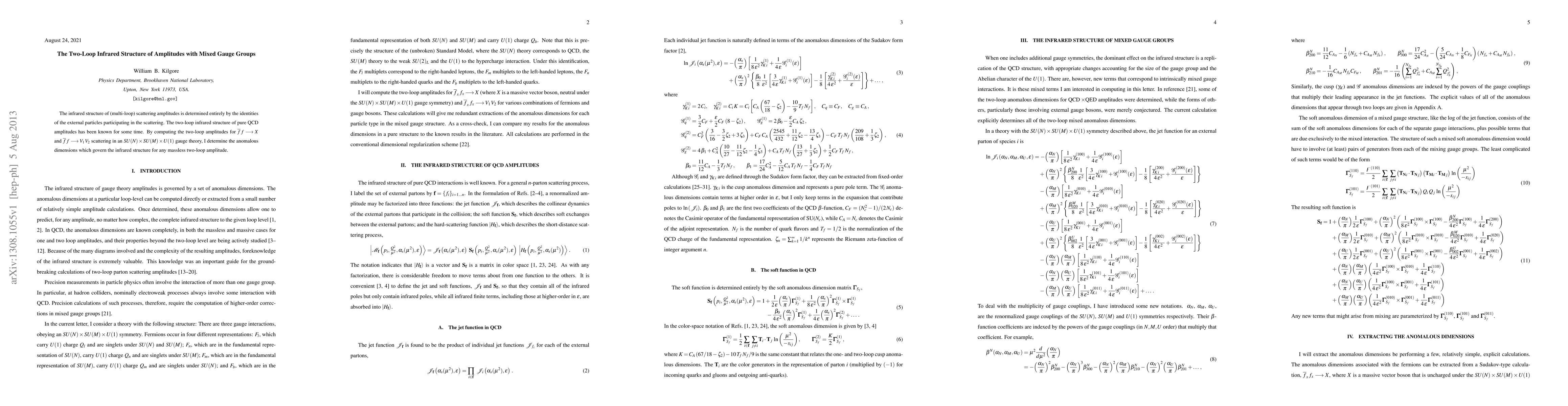 The infrared structure of (multi-loop) scattering amplitudes is determined entirely by the identities of the external particles participating in the scattering. The two-loop infrared structure of pure \qcd\ amplitudes has been known for some time. By computing the two-loop amplitudes for $\bar{f}\,f\longrightarrow X$ and $\bar{f}\,f\longrightarrow V_1\,V_2$ scattering in an $SU(N)\times SU(M)\times U(1)$ gauge theory, I determine the anomalous dimensions which govern the infrared structure for any massless two-loop amplitude.