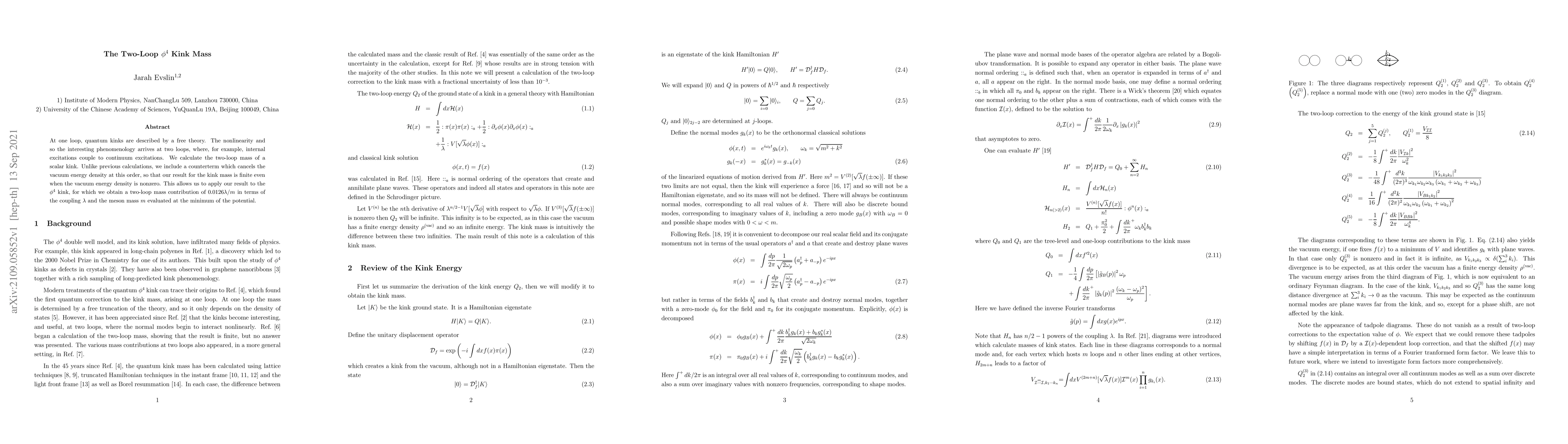 At one loop, quantum kinks are described by a free theory. The nonlinearity and so the interesting phenomenology arrives at two loops, where, for example, internal excitations couple to continuum excitations. We calculate the two-loop mass of a scalar kink. Unlike previous calculations, we include a counterterm which cancels the vacuum energy density at this order, so that our result for the kink mass is finite even when the vacuum energy density is nonzero. This allows us to apply our result to the $\phi^4$ kink, for which we obtain a two-loop mass contribution of $0.0126\lambda/m$ in terms of the coupling $\lambda$ and the meson mass $m$ evaluated at the minimum of the potential.