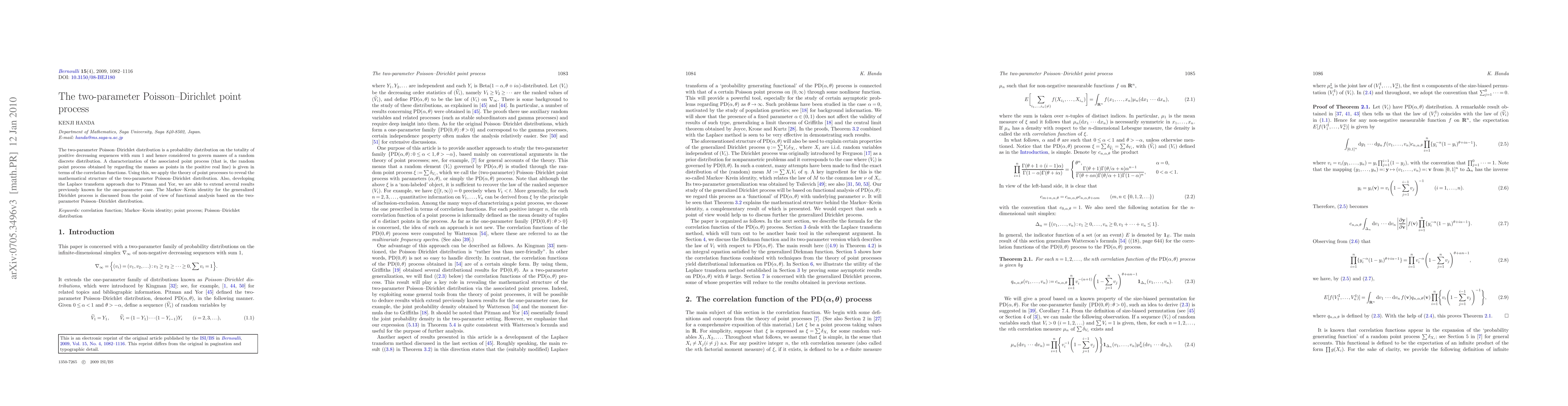 The research employs a probabilistic approach, utilizing the theory of point processes and the Laplace transform to analyze the two-parameter Poisson-Dirichlet distribution.
