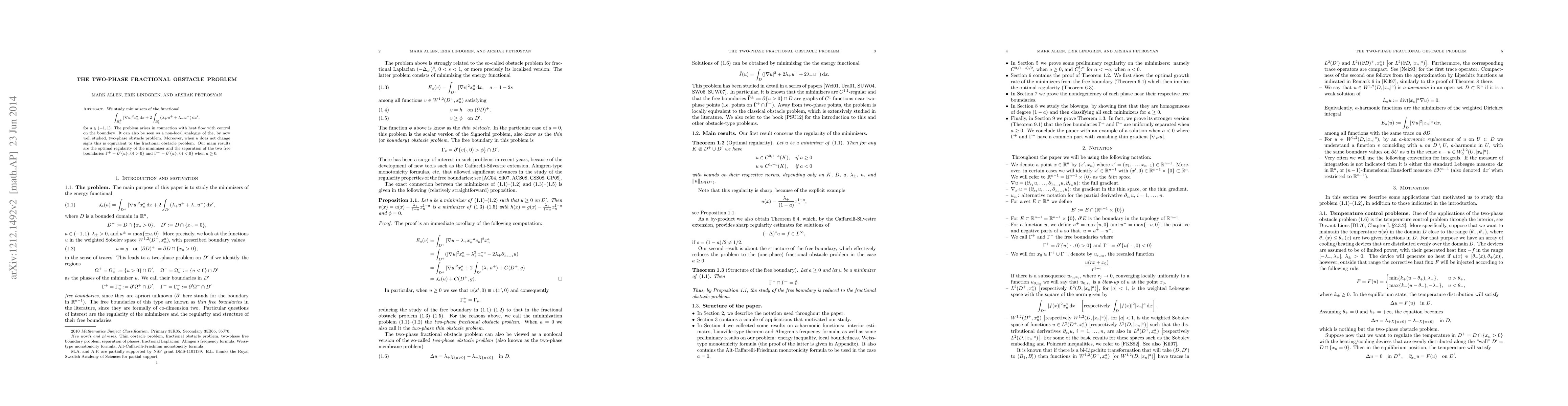 We study minimizers of the functional $$ \int_{B_1^+}|\nabla u|^2 x_n^a\,d x +2\int_{B_1'} (\lambda_+ u^++\lambda_- u^-)\,d x', $$ for $a\in(-1,1)$. The problem arises in connection with heat flow with control on the boundary. It can also be seen as a non-local analogue of the, by now well studied, two-phase obstacle problem. Moreover, when $u$ does not change signs this is equivalent to the fractional obstacle problem. Our main results are the optimal regularity of the minimizer and the separation of the two free boundaries $\Gamma^+=\partial'\{u(\cdot,0)>0\}$ and $\Gamma^-=\partial'\{u(\cdot,0)<0\}$ when $a\geq 0$.