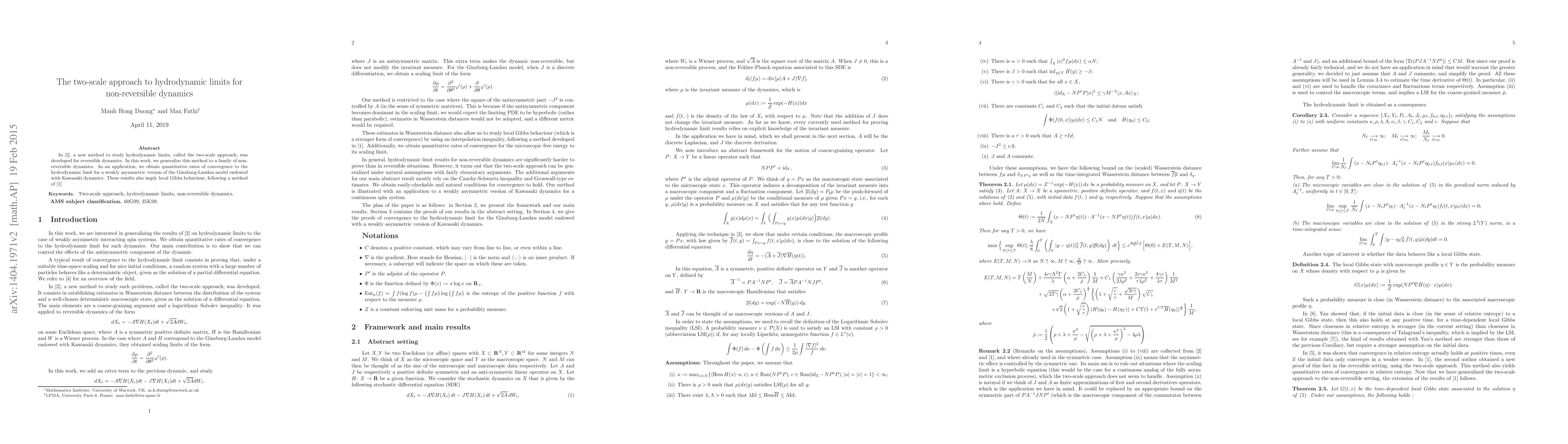 This paper generalizes a method for studying hydrodynamic limits to non-reversible dynamics, with specific applications to the Ginzburg-Landau model and implications for local Gibbs behavior.