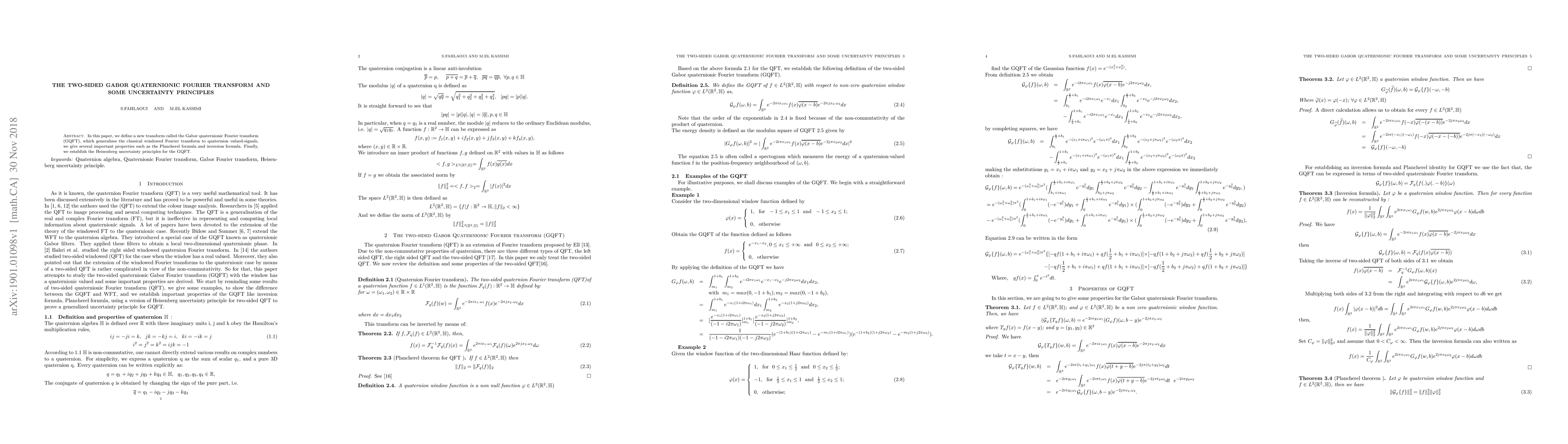This paper introduces the Gabor quaternionic Fourier transform (GQFT), extending the windowed Fourier transform to quaternion-valued signals, and presents its properties including the Plancherel and inversion formulas, along with Heisenberg uncertainty principles.
