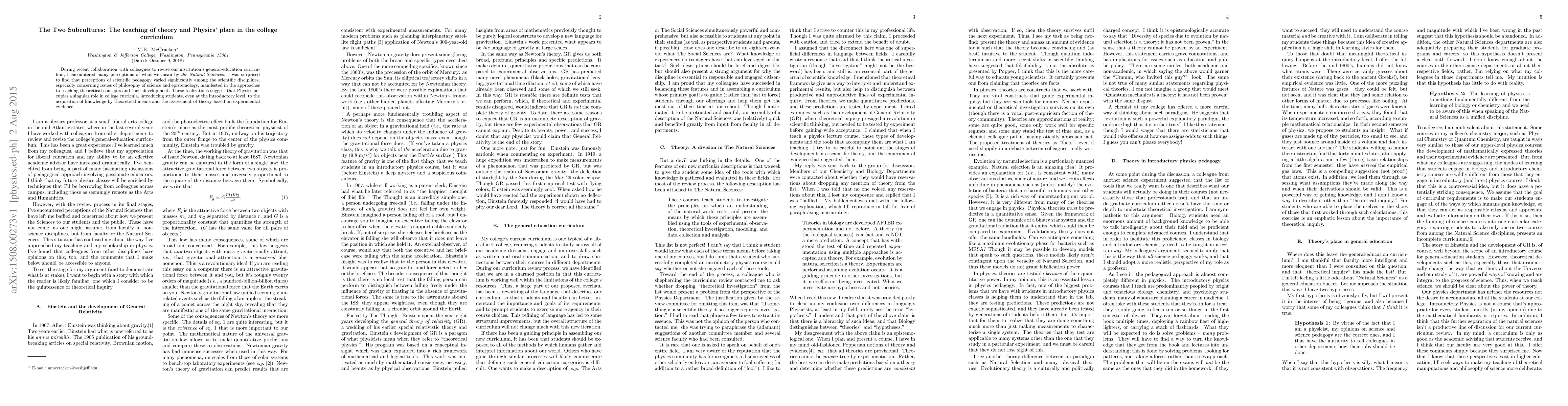 During recent collaboration with colleagues to revise our institution's general-education curriculum, I encountered many perceptions of what we mean by the Natural Sciences. I was surprised to find that perceptions of scientific pedagogy varied significantly among the scientific disciplines, especially concerning issues of philosophy of science and epistemology, manifested in the approaches to teaching theoretical concepts and their development. These realizations suggest that Physics occupies a singular role in college curricula, introducing students, even at the introductory level, to the acquisition of knowledge by theoretical means and the assessment of theory based on experimental evidence.