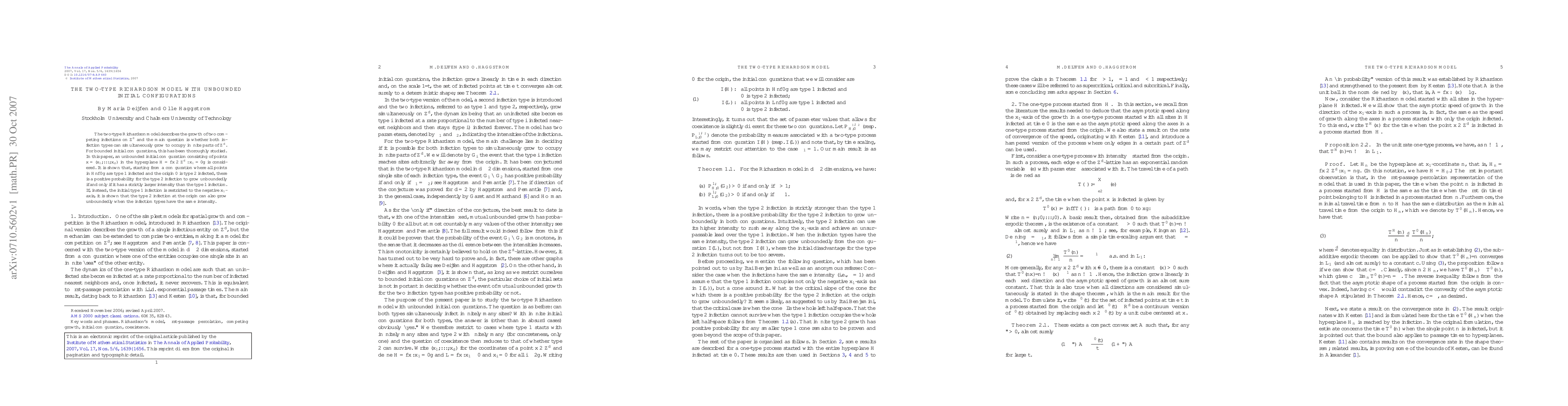 The two-type Richardson model describes the growth of two competing infections on $\mathbb{Z}^d$ and the main question is whether both infection types can simultaneously grow to occupy infinite parts of $\mathbb{Z}^d$. For bounded initial configurations, this has been thoroughly studied. In this paper, an unbounded initial configuration consisting of points $x=(x_1,...,x_d)$ in the hyperplane $\mathcal{H}=\{x\in\mathbb{Z}^d:x_1=0\}$ is considered. It is shown that, starting from a configuration where all points in $\mathcal{H} {\mathbf{0}\}$ are type 1 infected and the origin $\mathbf{0}$ is type 2 infected, there is a positive probability for the type 2 infection to grow unboundedly if and only if it has a strictly larger intensity than the type 1 infection. If, instead, the initial type 1 infection is restricted to the negative $x_1$-axis, it is shown that the type 2 infection at the origin can also grow unboundedly when the infection types have the same intensity.