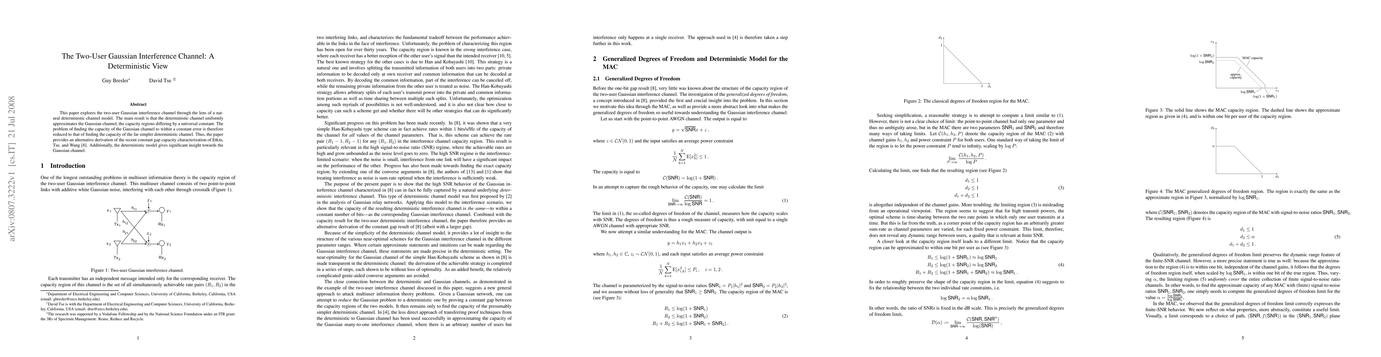 This paper demonstrates that a deterministic channel model can uniformly approximate the two-user Gaussian interference channel, with capacity regions differing by a universal constant. This simplifies the problem of finding the Gaussian channel's capacity to that of the simpler deterministic channel, providing insight into the Gaussian channel's capacity characterization.