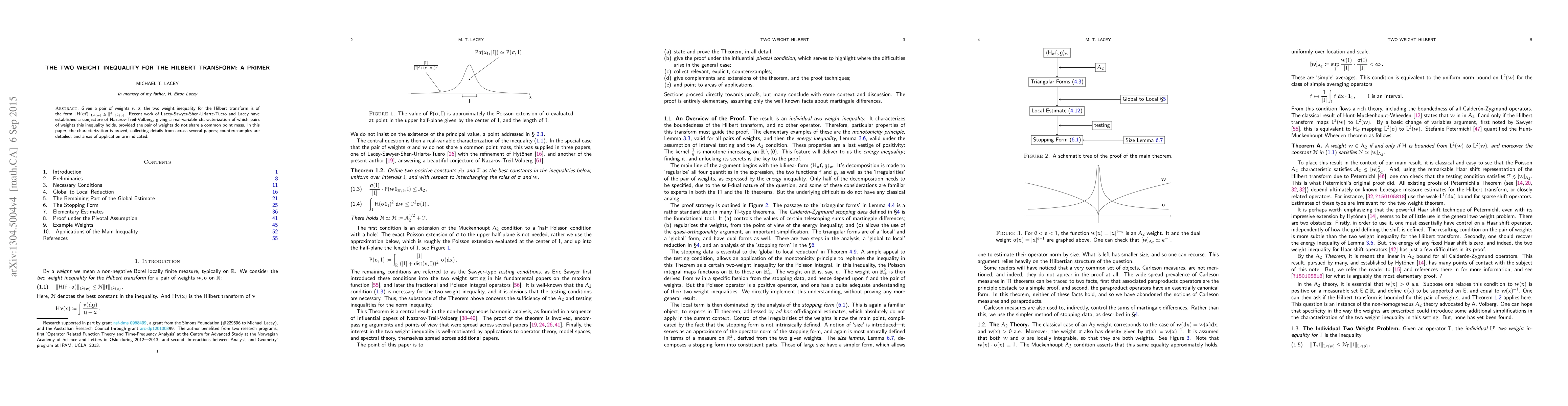 Recent work of Lacey-Sawyer-Shen-Uriarte-Tuero and Lacey have established a conjecture of Nazarov-Treil-Volberg, giving a real-variable characterization of the two weight inequality for the Hilbert transform, provided the pair of weights do not share a common point mass. In this paper, the characterization is proved, collecting details from across several papers, compactness is characterized, all relevant estimates are proved, counterexamples are details, and areas of application are indicated.
