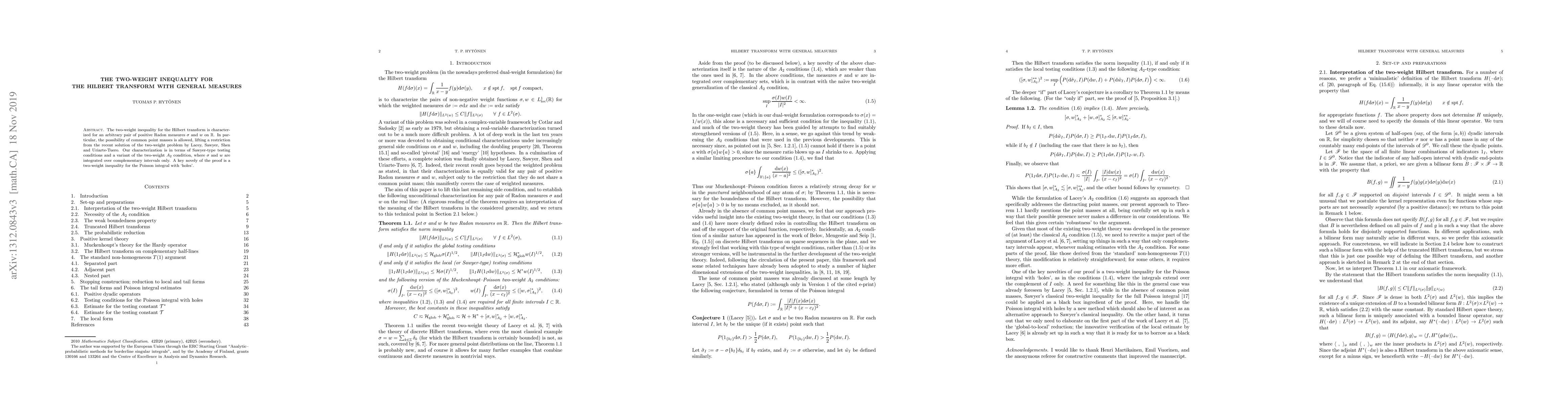 The two-weight inequality for the Hilbert transform is characterized for an arbitrary pair of positive Radon measures $\sigma$ and $w$ on $\mathbb R$. In particular, the possibility of common point masses is allowed, lifting a restriction from the recent solution of the two-weight problem by Lacey, Sawyer, Shen and Uriarte-Tuero. Our characterization is in terms of Sawyer-type testing conditions and a variant of the two-weight $A_2$ condition, where $\sigma$ and $w$ are integrated over complementary intervals only. A key novely of the proof is a two-weight inequality for the Poisson integral with `holes'.
