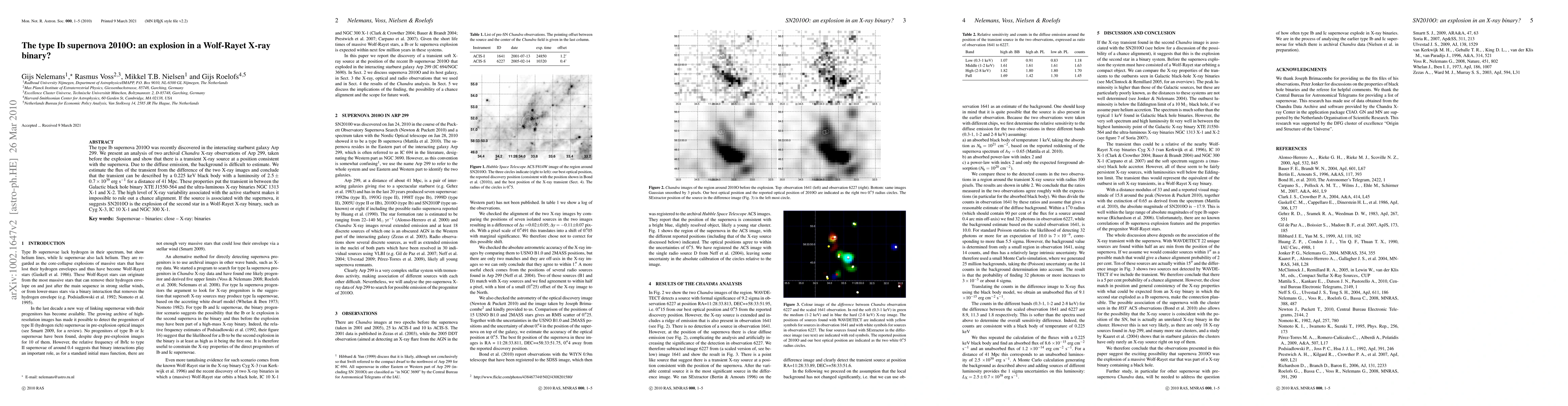 Researchers detected a transient X-ray source in galaxy Arp 299 before supernova 2010O's explosion, suggesting it could be related to a Wolf-Rayet X-ray binary.