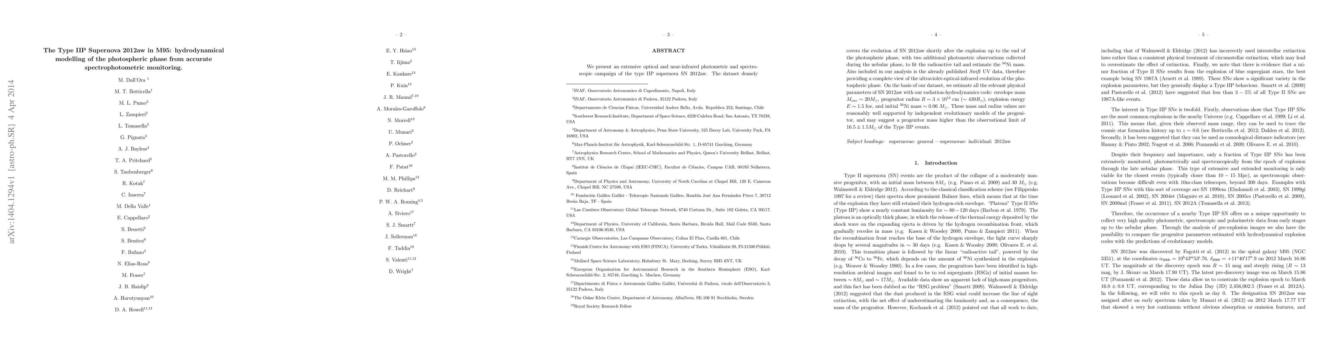 The research presents an extensive optical and near-infrared photometric and spectroscopic campaign of SN 2012aw, utilizing a radiation-hydrodynamics code to model the photospheric phase and estimate physical parameters.