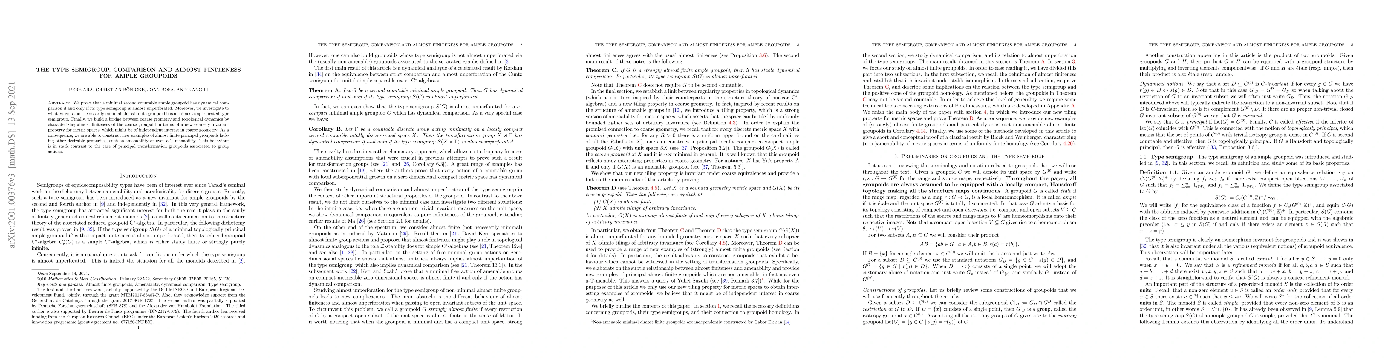 This paper explores the relationship between dynamical comparison and the type semigroup in minimal second countable ample groupoids, proving they are equivalent to the semigroup being almost unperforated. It also investigates the presence of this property in non-minimal almost finite groupoids and bridges coarse geometry and topological dynamics through a new coarsely invariant property characterizing almost finiteness in coarse groupoids.