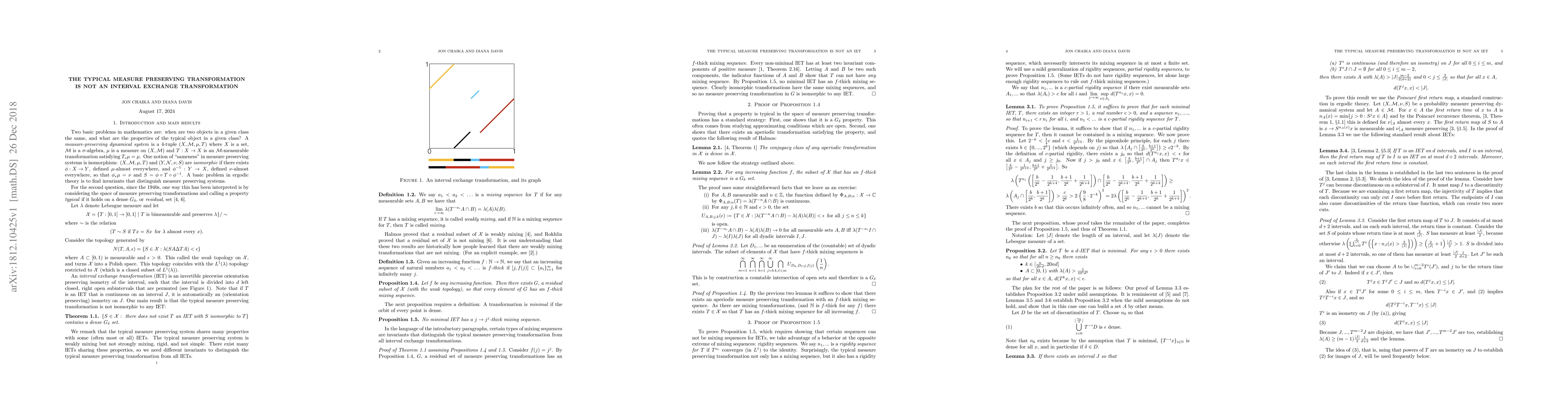 Summary: This paper demonstrates that the standard measure preserving transformation does not align with the properties of an interval exchange transformation, highlighting a fundamental distinction between these two types of transformations.