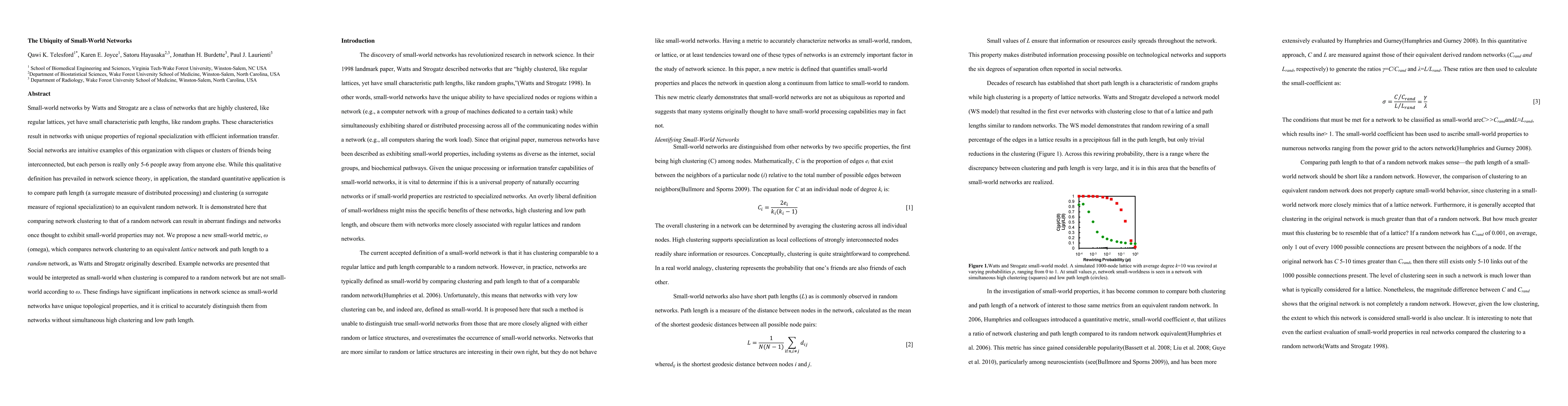 This paper discusses the limitations of current methods for identifying small-world networks, proposing a new metric, ω, that compares clustering to a lattice network and path length to a random network. It highlights that some networks previously thought to be small-world do not meet the new criteria, emphasizing the importance of accurate identification of these unique network properties.