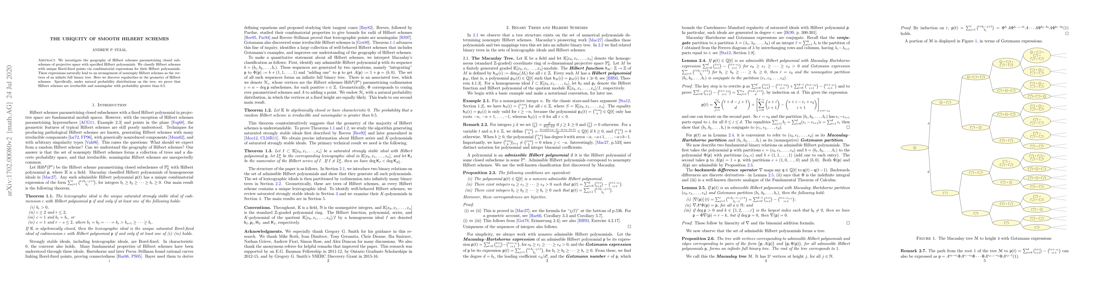 This paper classifies Hilbert schemes with unique Borel-fixed points using combinatorial expressions for their Hilbert polynomials, revealing a binary tree structure. It demonstrates that under certain probability distributions, these schemes are likely to be irreducible and nonsingular with a probability exceeding 0.5.
