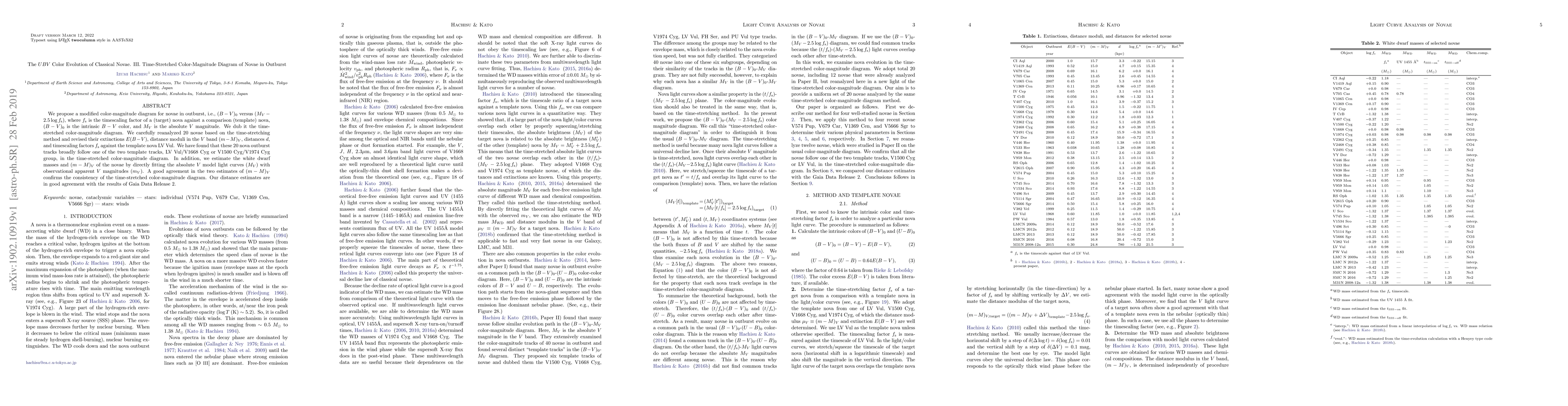 This paper introduces a time-stretched color-magnitude diagram to analyze the evolution of classical novae, finding that 20 novae follow established tracks. The method revises extinctions, distances, and white dwarf masses, showing consistency with Gaia Data Release 2 results.