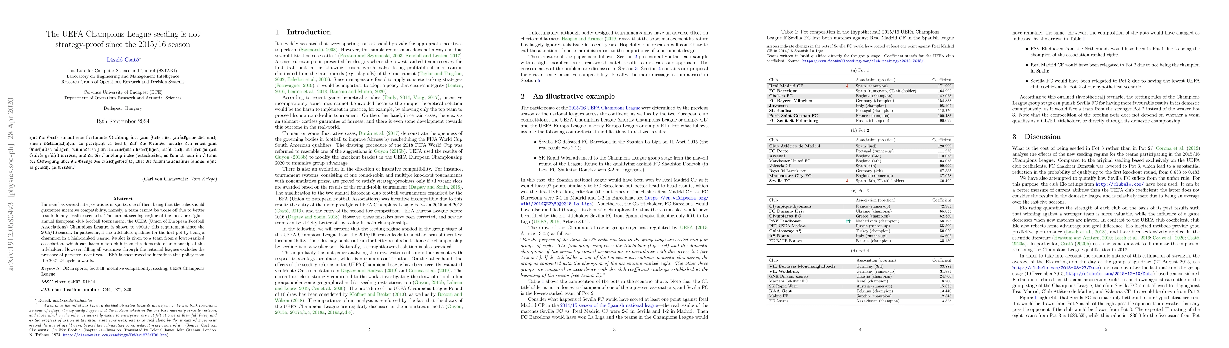 Fairness has several interpretations in sports, one of them being that the rules should guarantee incentive compatibility, namely, a team cannot be worse off due to better results in any feasible scenario. The current seeding regime of the most prestigious annual European club football tournament, the UEFA (Union of European Football Associations) Champions League, is shown to violate this requirement since the 2015/16 season. In particular, if the titleholder qualifies for the first pot by being a champion in a high-ranked league, its slot is given to a team from a lower-ranked association, which can harm a top club from the domestic championship of the titleholder. However, filling all vacancies through the national leagues excludes the presence of perverse incentives. UEFA is encouraged to introduce this policy from the 2021-24 cycle onwards.