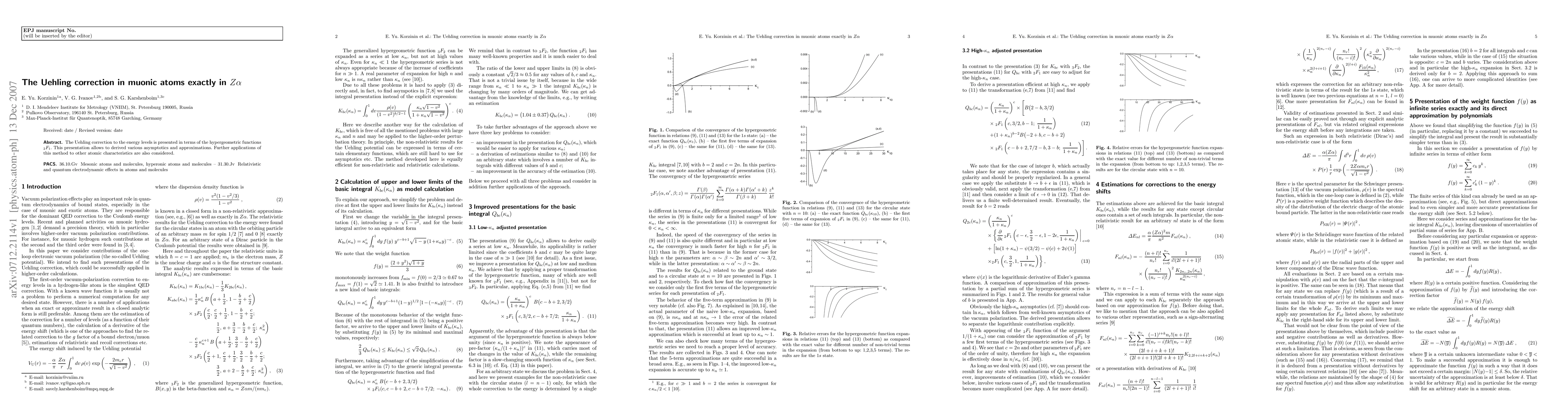 Summary: This paper presents the Uehling correction for energy levels in muonic atoms using hypergeometric functions 2F1, enabling the derivation of various asymptotics and approximations, with potential applications to other atomic characteristics.