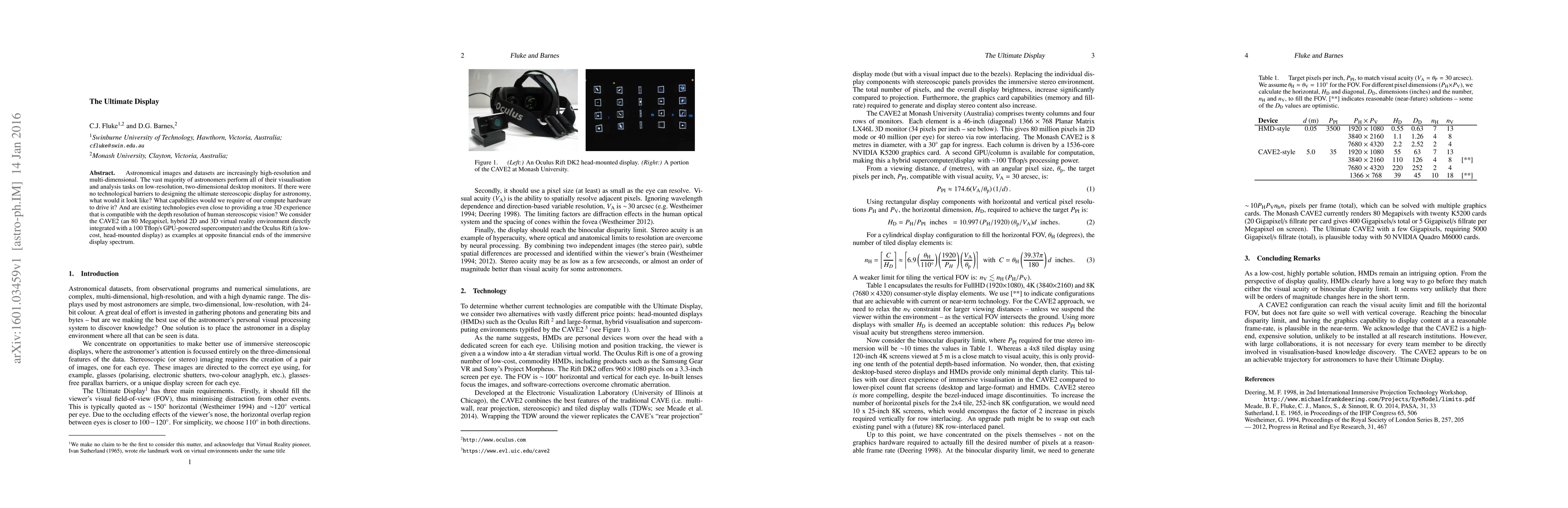 Astronomical images and datasets are increasingly high-resolution and multi-dimensional. The vast majority of astronomers perform all of their visualisation and analysis tasks on low-resolution, two-dimensional desktop monitors. If there were no technological barriers to designing the ultimate stereoscopic display for astronomy, what would it look like? What capabilities would we require of our compute hardware to drive it? And are existing technologies even close to providing a true 3D experience that is compatible with the depth resolution of human stereoscopic vision? We consider the CAVE2 (an 80 Megapixel, hybrid 2D and 3D virtual reality environment directly integrated with a 100 Tflop/s GPU-powered supercomputer) and the Oculus Rift (a low- cost, head-mounted display) as examples at opposite financial ends of the immersive display spectrum.