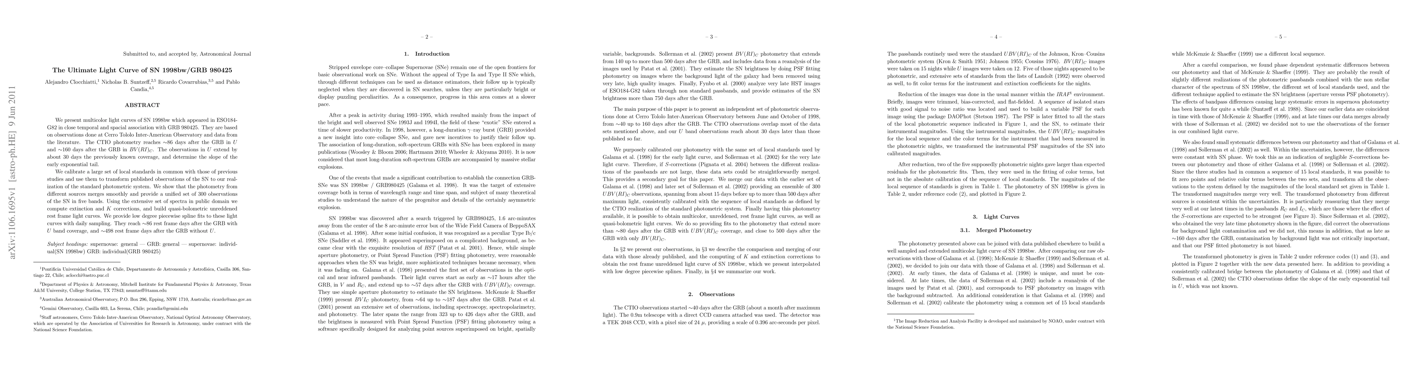 This paper presents comprehensive multicolor light curves of supernova SN 1998bw, which appeared near GRB 980425, based on extended observations up to 160 days post-GRB. The study provides a unified set of 300 photometric observations and offers low degree piecewise spline fits for quasi-bolometric light curves.