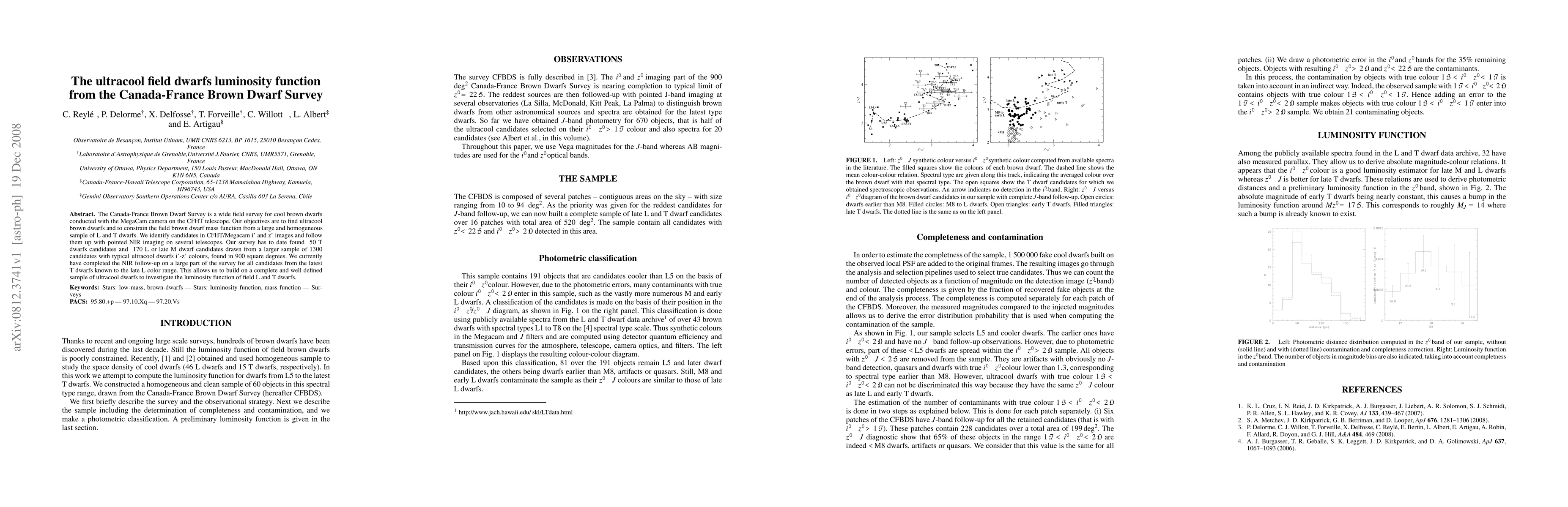 The Canada-France Brown Dwarf Survey identifies ultracool brown dwarfs using the MegaCam camera, finding 50 T dwarf candidates and 170 L or late M dwarf candidates. The study aims to constrain the field brown dwarf mass function and has completed NIR follow-up for a large sample, allowing for an investigation into the luminosity function of L and T dwarfs.