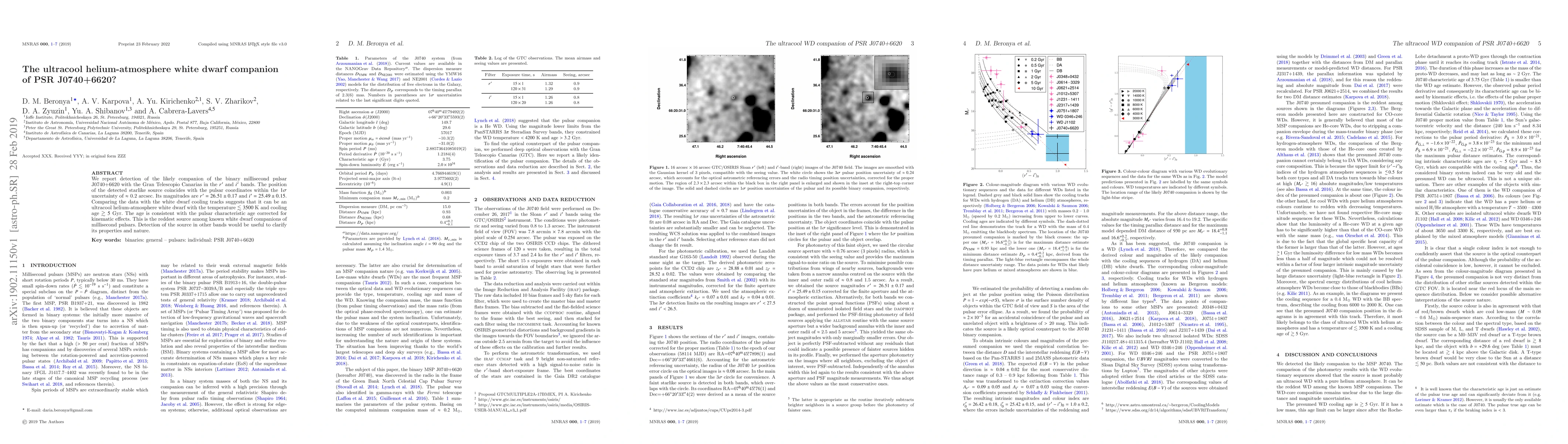 Researchers detected an ultracool helium-atmosphere white dwarf companion to the millisecond pulsar J0740+6620, characterized by its red magnitudes in the $r'$ and $i'$ bands. The white dwarf is estimated to have a temperature below 3500 K and an age of at least 5 Gyr, consistent with the pulsar's corrected characteristic age.
