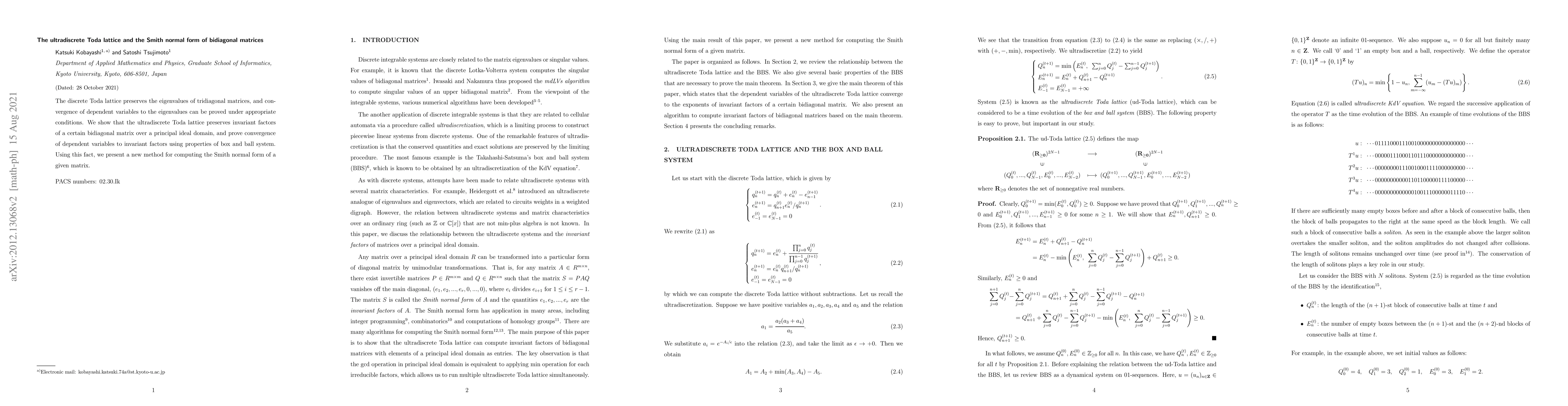 The discrete Toda lattice preserves the eigenvalues of tridiagonal matrices, and convergence of dependent variables to the eigenvalues can be proved under appropriate conditions. We show that the ultradiscrete Toda lattice preserves invariant factors of a certain bidiagonal matrix over a principal ideal domain, and prove convergence of dependent variables to invariant factors using properties of box and ball system. Using this fact, we present a new method for computing the Smith normal form of a given matrix.