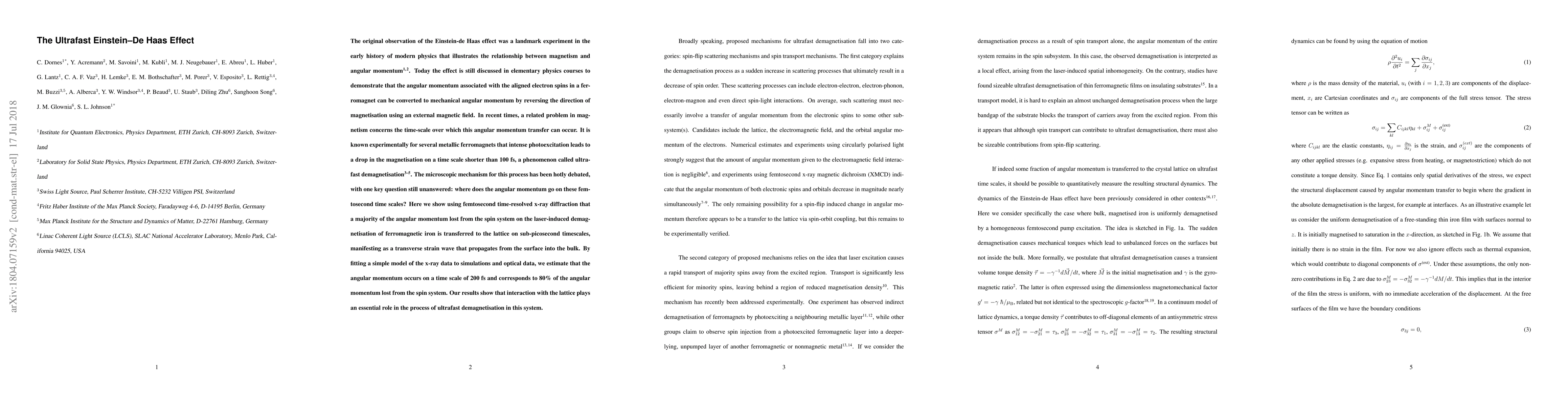 Researchers used femtosecond time-resolved x-ray diffraction to show that ultrafast demagnetisation in ferromagnetic iron involves the transfer of angular momentum to the lattice, manifesting as a transverse strain wave, within 200 fs.