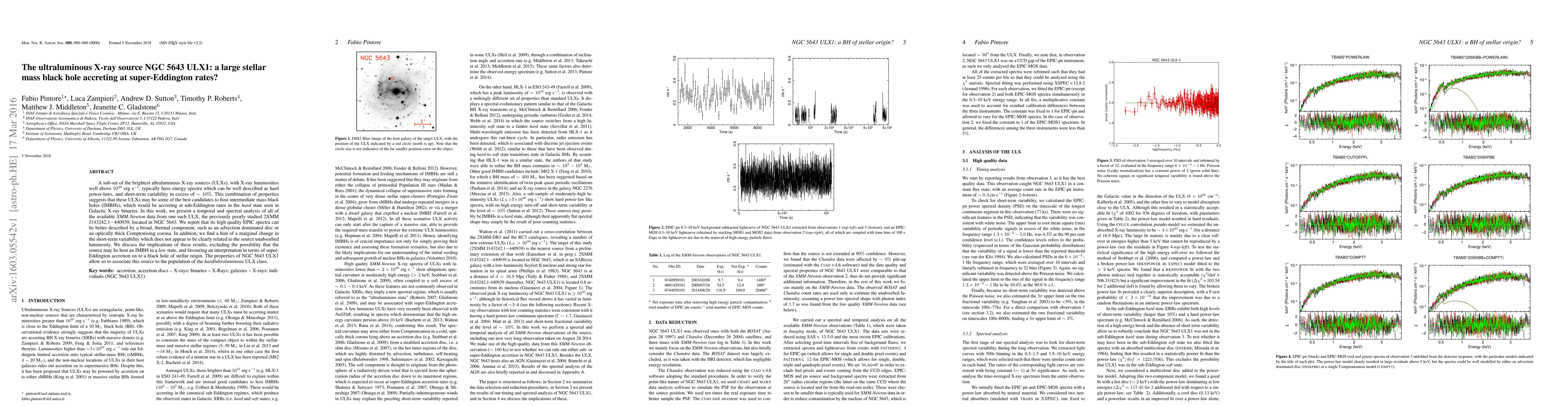 This study analyzes the ultraluminous X-ray source NGC 5643 ULX1, finding its spectrum better described by a thermal component, suggesting super-Eddington accretion onto a stellar-mass black hole rather than an intermediate-mass black hole in a low state.