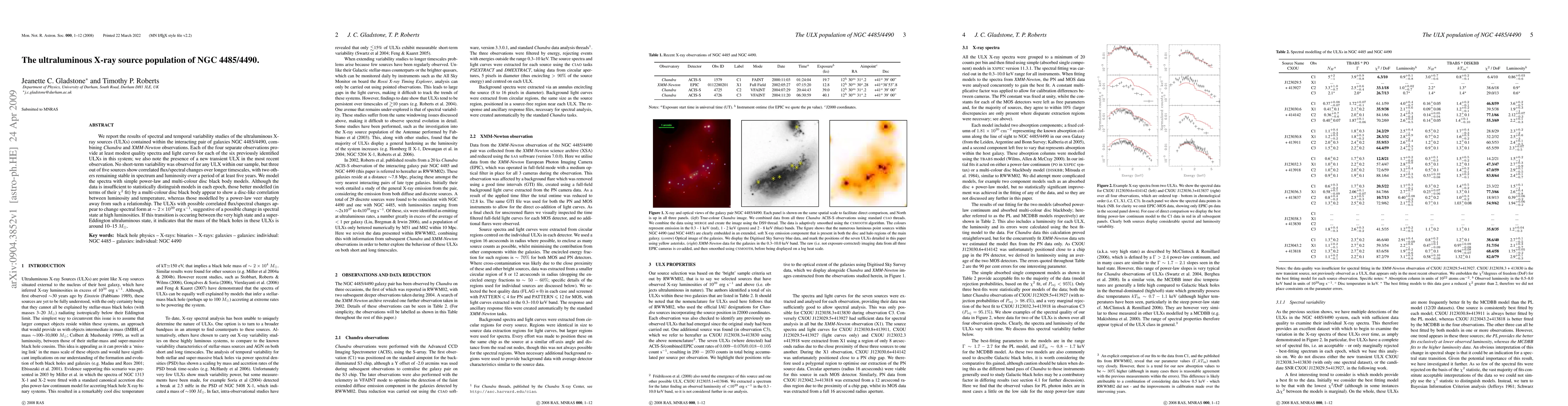 The study of ultraluminous X-ray sources in NGC 4485/4490 reveals that three ULXs show correlated flux/spectral changes over longer timescales, while two others remain stable for at least five years, suggesting a possible change in spectral state above a certain luminosity threshold around 2 x 10^39 erg s^{-1}.