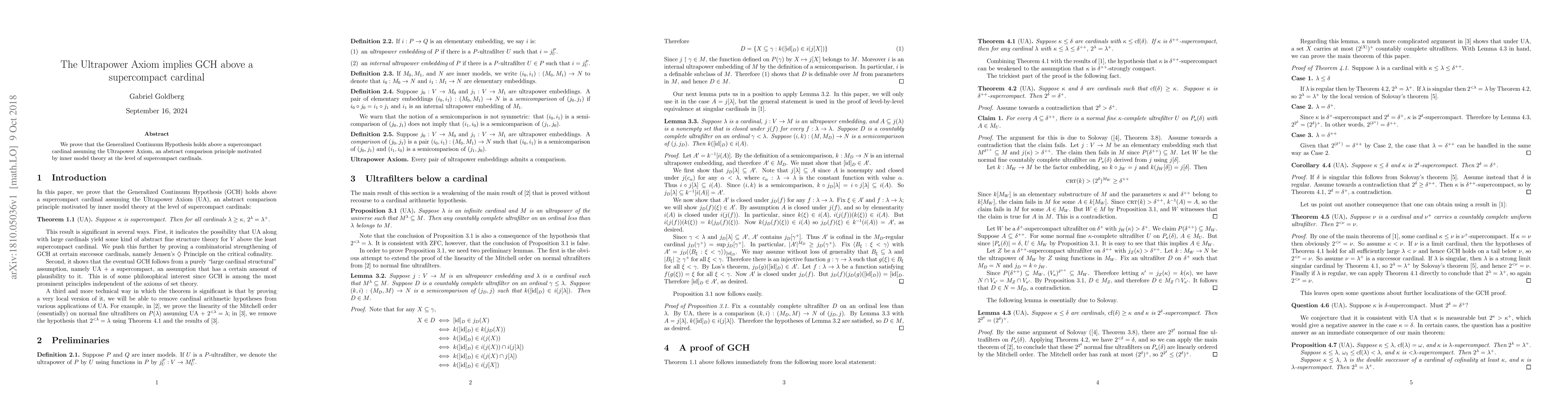 Summary: This paper demonstrates that the Ultrapower Axiom leads to the Generalized Continuum Hypothesis (GCH) holding above a supercompact cardinal, utilizing an abstract comparison principle inspired by inner model theory.