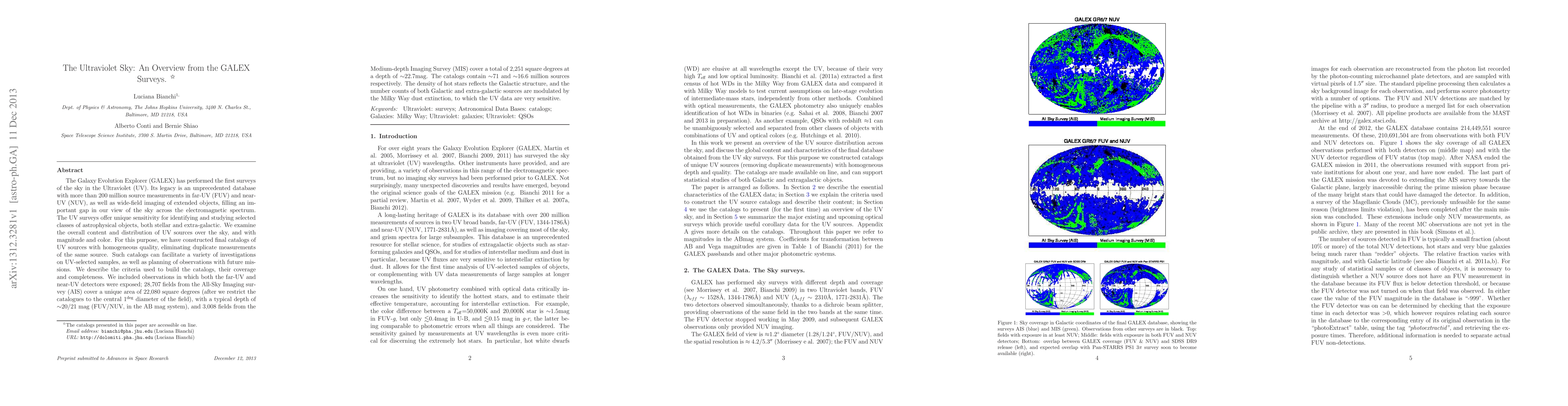 The GALEX surveys have produced an extensive database of over 200 million UV source measurements, enabling detailed studies of both stellar and extra-galactic objects. The final catalogs, covering 22,080 square degrees, provide homogeneous data for future investigations and mission planning.