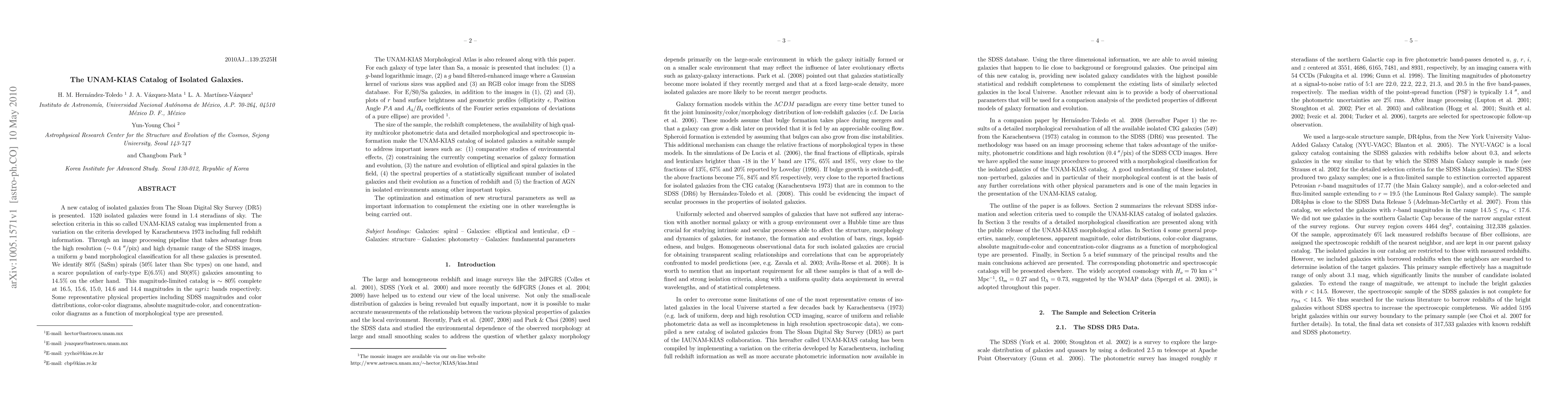 The UNAM-KIAS Catalog of Isolated Galaxies presents a new compilation of 1520 isolated galaxies from the Sloan Digital Sky Survey, classified using a refined morphological scheme. The catalog includes detailed physical properties and an accompanying Morphological Atlas with enhanced images and profiles for each galaxy.