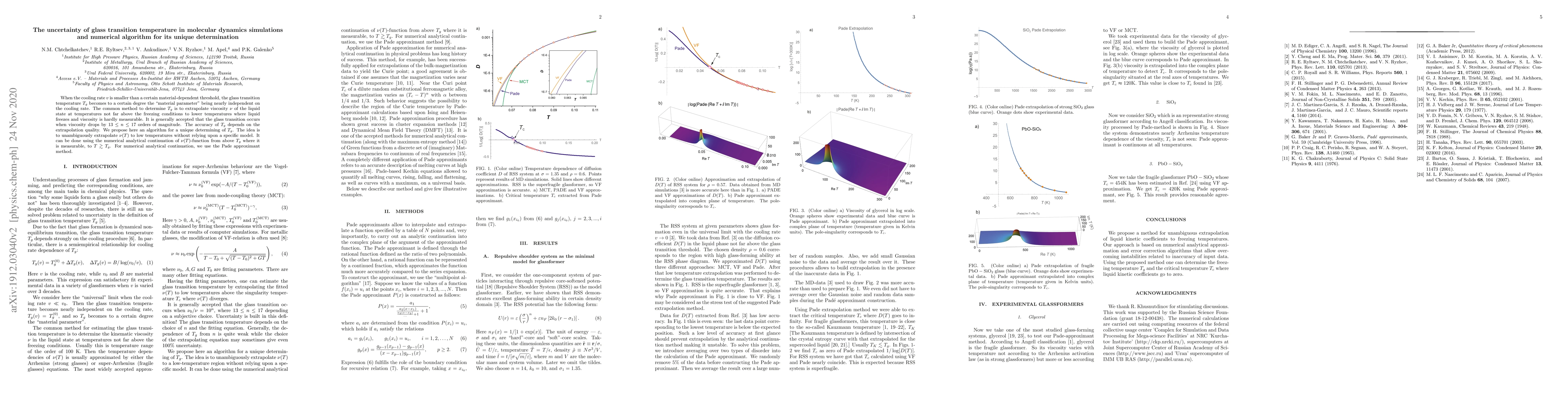 Researchers propose a new algorithm to uniquely determine the glass transition temperature in molecular dynamics simulations using numerical analytical continuation of viscosity functions.