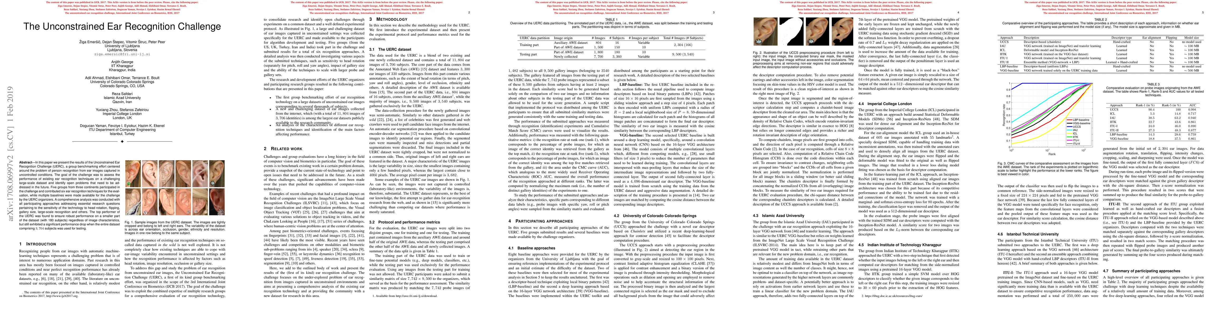 This paper reports on the Unconstrained Ear Recognition Challenge (UERC), evaluating the performance of ear recognition techniques on a large-scale dataset under uncontrolled conditions. The top performer showed robust results on a smaller subset but struggled with the full dataset, highlighting challenges in large-scale recognition and sensitivity to image variations.