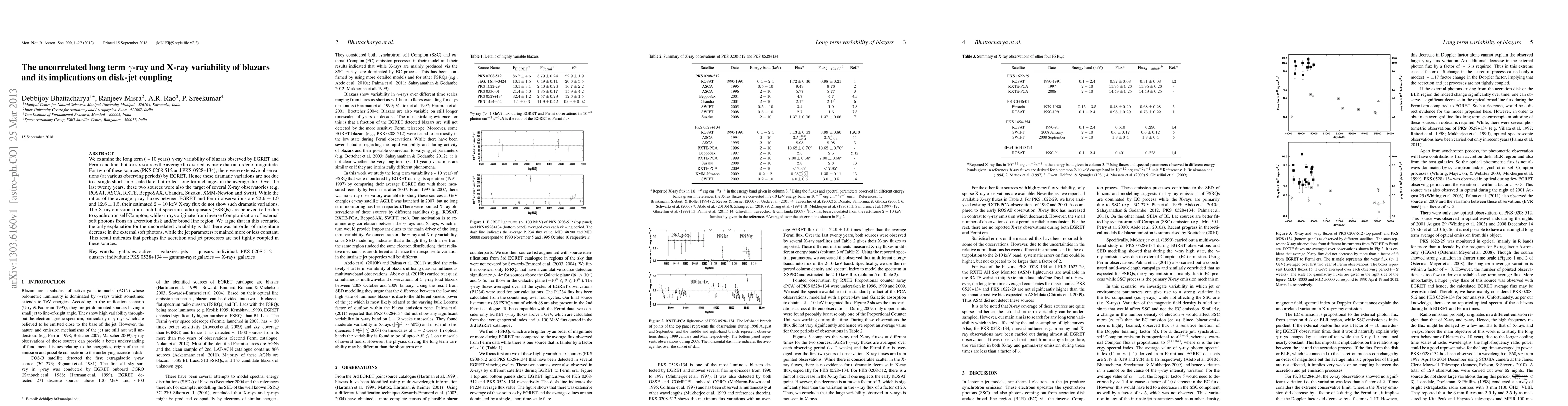 We examine the long term (~10 years) gamma-ray variability of blazars observed by EGRET and Fermi and find that for six sources the average flux varied by more than an order of magnitude. For two of these sources (PKS 0208-512 and PKS 0528+134), there were extensive observations (at various observing periods) by EGRET. Hence these dramatic variations are not due to a single short time-scale flare, but reflect long term changes in the average flux. Over the last twenty years, these two sources were also the target of several X-ray observatories (e.g. ROSAT, ASCA, RXTE, BeppoSAX, Chandra, Suzaku, XMM-Newton and Swift). While the ratios of the average gamma-ray fluxes between EGRET and Fermi observations are 22.9 +/- 1.9 and 12.6 +/- 1.5, their estimated 2-10 keV X-ray flux do not show such dramatic variations. The X-ray emission from such flat spectrum radio quasars (FSRQs) are believed to be due to synchrotron self Compton, while gamma-rays originate from inverse Comptonization of external soft photons from an accretion disk and/or broad line region. We argue that in this scenario, the only explanation for the uncorrelated variability is that there was an order of magnitude decrease in the external soft photons, while the jet parameters remained more or less constant. This result indicates that perhaps the accretion and jet processes are not tightly coupled in these sources.