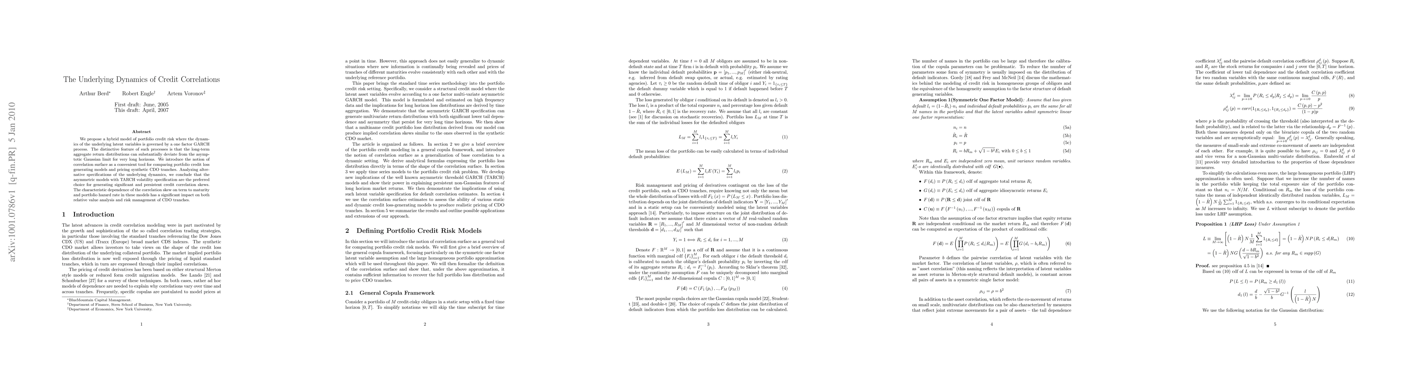 We propose a hybrid model of portfolio credit risk where the dynamics of the underlying latent variables is governed by a one factor GARCH process. The distinctive feature of such processes is that the long-term aggregate return distributions can substantially deviate from the asymptotic Gaussian limit for very long horizons. We introduce the notion of correlation surface as a convenient tool for comparing portfolio credit loss generating models and pricing synthetic CDO tranches. Analyzing alternative specifications of the underlying dynamics, we conclude that the asymmetric models with TARCH volatility specification are the preferred choice for generating significant and persistent credit correlation skews. The characteristic dependence of the correlation skew on term to maturity and portfolio hazard rate in these models has a significant impact on both relative value analysis and risk management of CDO tranches.
