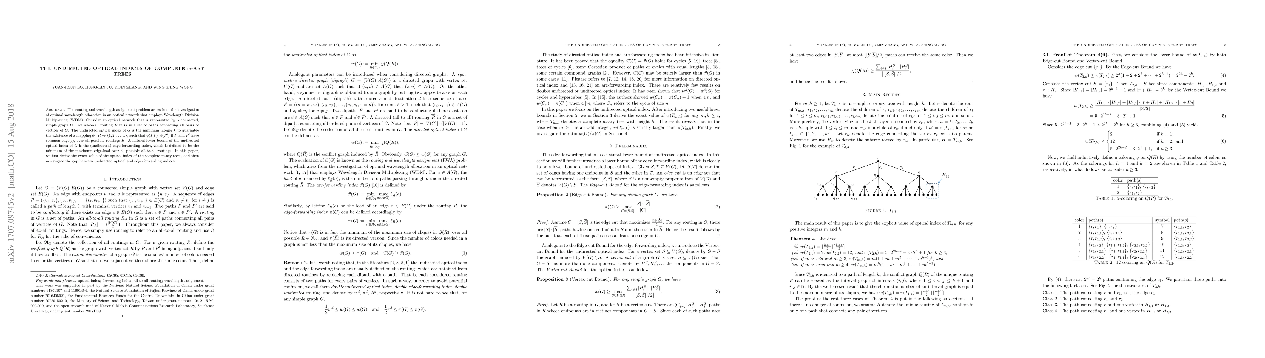 The routing and wavelength assignment problem arises from the investigation of optimal wavelength allocation in an optical network that employs Wavelength Division Multiplexing (WDM). Consider an optical network that is represented by a connected, simple graph $G$. An all-to-all routing $R$ in $G$ is a set of paths connecting all pairs of vertices of $G$. The undirected optical index of $G$ is the minimum integer $k$ to guarantee the existence of a mapping $\phi:R\to\{1,2,\ldots,k\}$, such that $\phi(P)\neq\phi(P')$ if $P$ and $P'$ have common edge(s), over all possible routings $R$. A natural lower bound of the undirected optical index of $G$ is the (undirected) edge-forwarding index, which is defined to be the minimum of the maximum edge-load over all possible all-to-all routings. In this paper, we first derive the exact value of the optical index of the complete $m$-ary trees, and then investigate the gap between undirected optical and edge-forwarding indices.