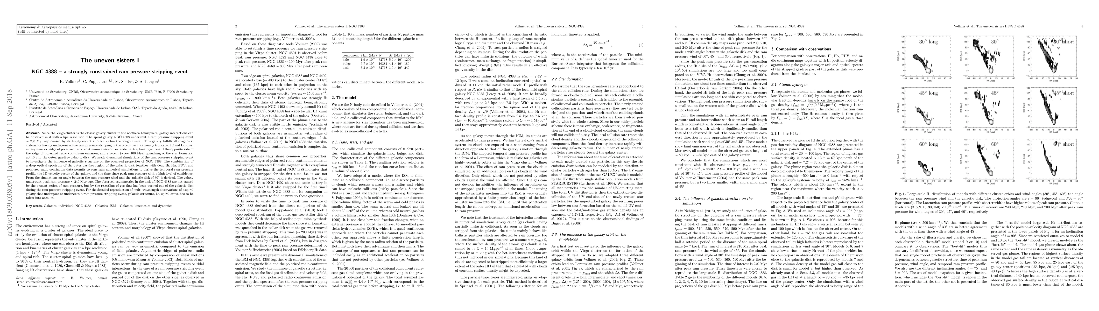 The paper investigates NGC 4388, a spiral galaxy in the Virgo cluster that experienced a ram pressure stripping event ~200 Myr ago, leading to observable asymmetries and gas truncation. Simulations reveal the galaxy's peak ram pressure ~240 Myr ago, emphasizing the importance of galactic structure in modeling such events.