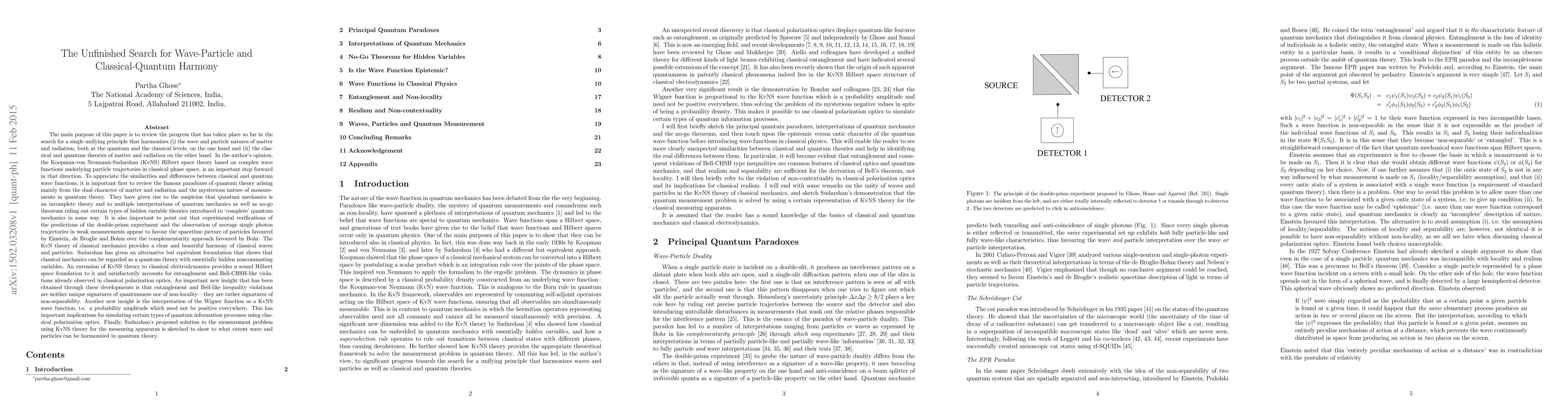 The main purpose of this paper is to review the progress that has taken place so far in the search for a single unifying principle that harmonizes (i) the wave and particle natures of matter and radiation, both at the quantum and the classical levels, on the one hand and (ii) the classical and quantum theories of matter and radiation on the other hand. The famous paradoxes of quantum theory, the mysterious nature of measurements in quantum theory and the principal no-go theorems for hidden variables are first briefly reviewed. The Koopman-von Neumann Hilbert space theory based on complex wave functions underlying particle trajectories in classical phase space, is an important step forward in that direction. It provides a clear and beautiful harmony of classical waves and particles. Sudarshan has given an alternative but equivalent formulation that shows that classical mechanics can be regarded as a quantum theory with essentially hidden non-commuting variables. An extension of KvNS theory to classical electrodynamics provides a sound Hilbert space foundation to it and satisfactorily accounts for entanglement and Bell-CHSH-like violations already observed in classical polarization optics. An important new insight that has been obtained through these developments is that entanglement and Bell-like inequality violations are neither unique signatures of quantumness nor of non-locality---they are rather signatures of non-separability. Finally, Sudarshan's proposed solution to the measurement problem using KvNS theory for the measuring apparatus is sketched to show to what extent wave and particles can be harmonized in quantum theory.