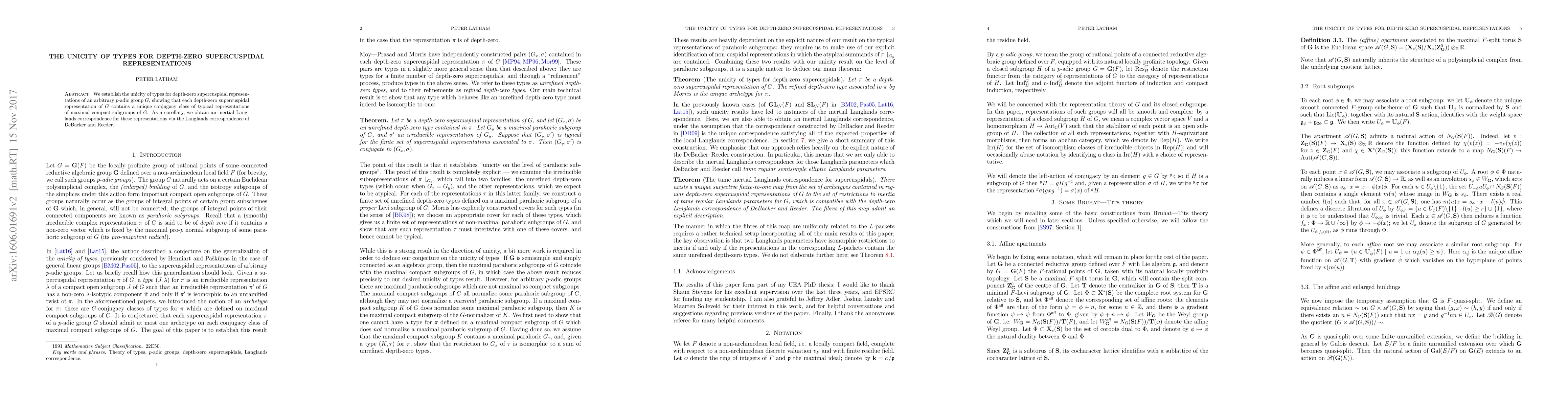 Summary: This paper proves the unicity of types for depth-zero supercuspidal representations of a $p$-adic group $G$, establishing that each such representation contains a single conjugacy class of typical representations from maximal compact subgroups, leading to an inertial Langlands correspondence.