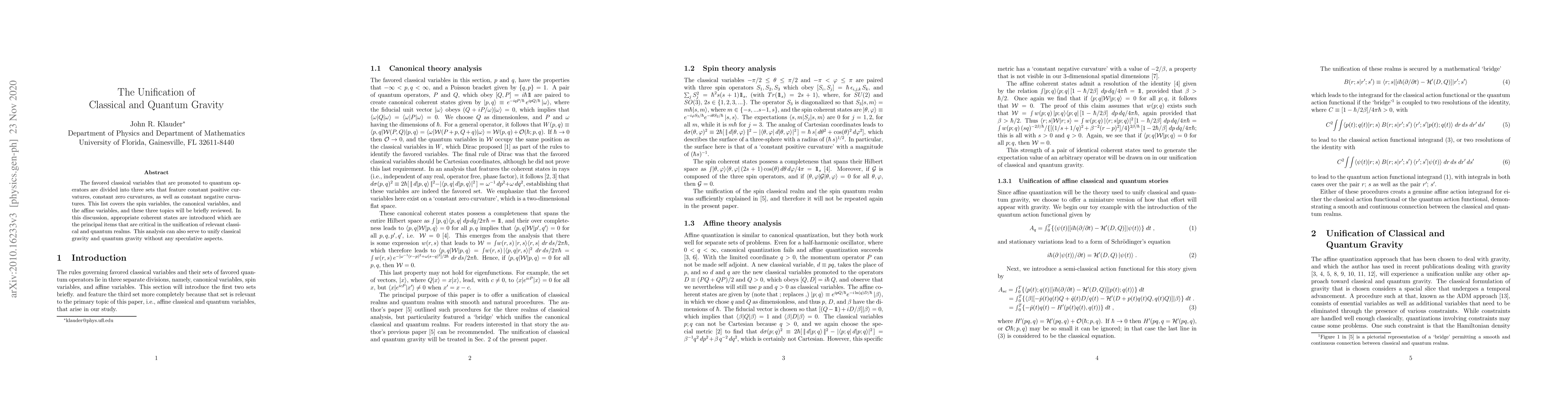 The favored classical variables that are promoted to quantum operators are divided into three sets that feature constant positive curvatures, constant zero curvatures, as well as constant negative curvatures. This list covers the spin variables, the canonical variables, and the affine variables, and these three topics will be briefly reviewed. In this discussion, appropriate coherent states are introduced which are the principal items that are critical in the unification of relevant classical and quantum realms. This analysis can also serve to unify classical gravity and quantum gravity without any speculative aspects..