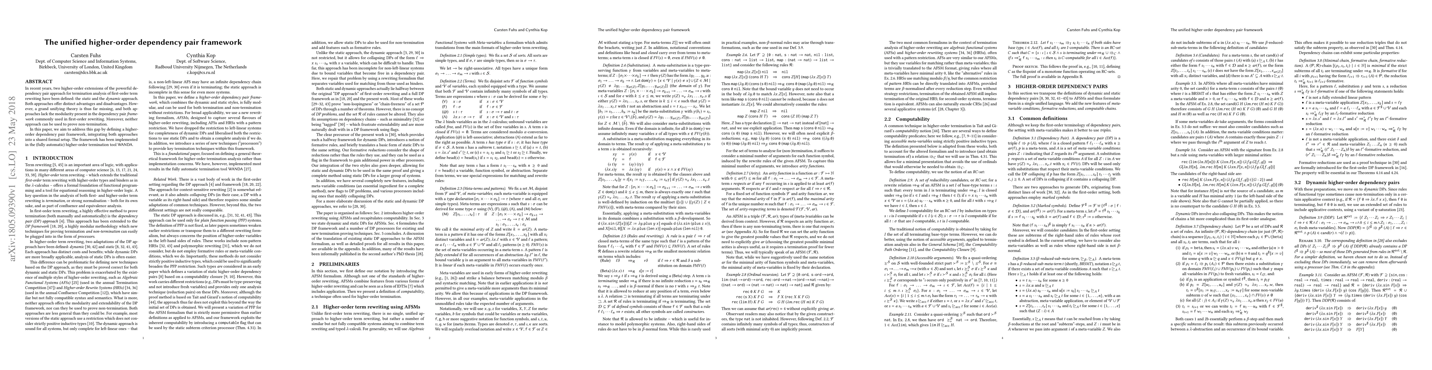 This paper proposes a unified higher-order dependency pair framework that integrates both static and dynamic approaches, aiming to overcome their individual limitations and enhance modularity for termination analysis in first-order term rewriting, while also being implemented in the WANDA tool.