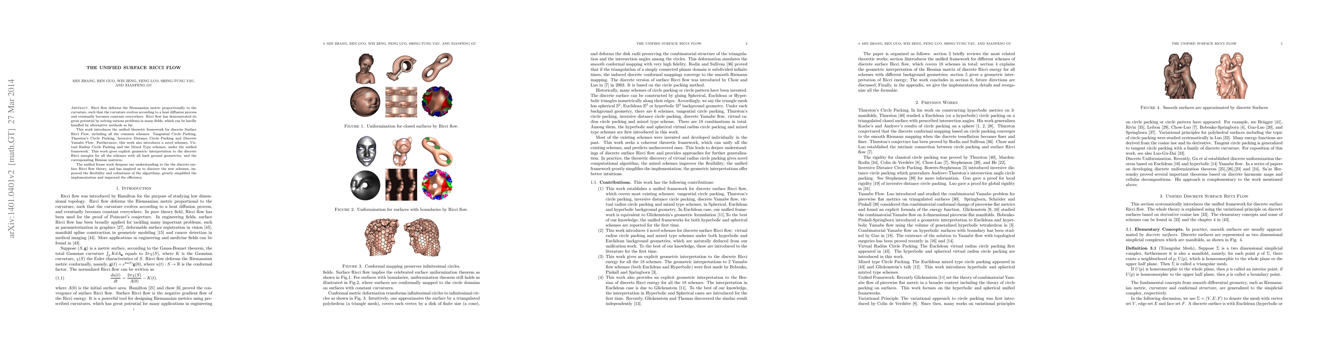 Ricci flow deforms the Riemannian metric proportionally to the curvature, such that the curvature evolves according to a heat diffusion process and eventually becomes constant everywhere. Ricci flow has demonstrated its great potential by solving various problems in many fields, which can be hardly handled by alternative methods so far. This work introduces the unified theoretic framework for discrete Surface Ricci Flow, including all common schemes: Thurston's Circle Packing, Tangential Circle Packing, Inversive Distance Circle Packing and Discrete Yamabe. Furthermore, this work also introduces a novel scheme, virtual radius circle packing, under the unified framework. This work gives explicit geometric interpretation to the discrete Ricci energy for all the schemes, and Hessian of the discrete Ricci energy for schemes with Euclidean back ground geometry. The unified frame work deepen our understanding to the the discrete surface Ricci flow theory, and inspired us to discover the new schemes, improved the flexibility and robustness of the algorithms, greatly simplified the implementation and improved the debugging efficiency. Experimental results shows the unified surface Ricci flow algorithms can handle general surfaces with different topologies, and is robust to meshes with different qualities, and effective for solving real problems.