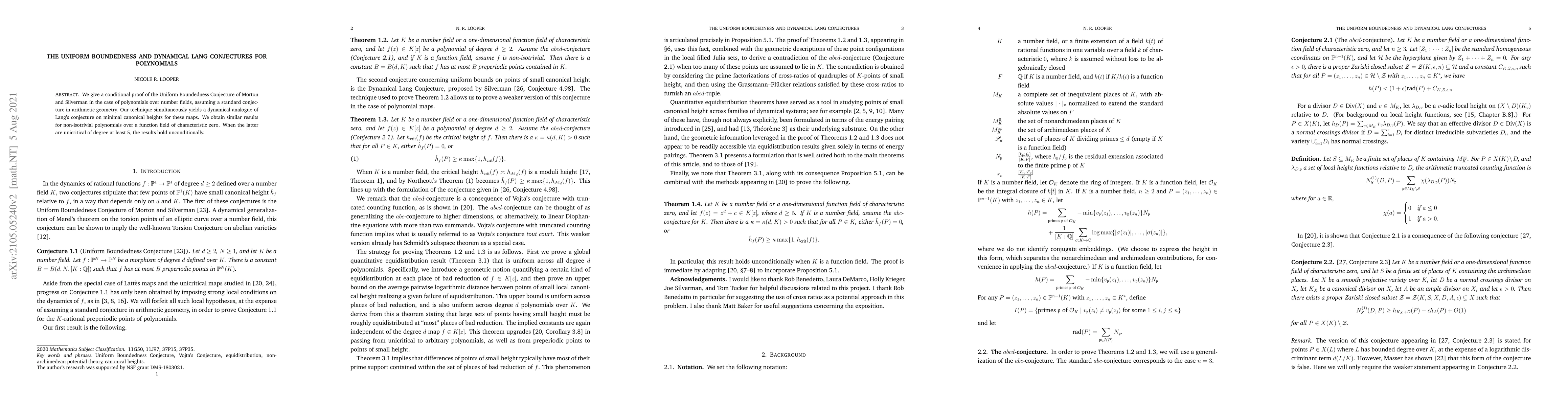 We give a conditional proof of the Uniform Boundedness Conjecture of Morton and Silverman in the case of polynomials over number fields, assuming a standard conjecture in arithmetic geometry. Our technique simultaneously yields a dynamical analogue of Lang's conjecture on minimal canonical heights for these maps. We obtain similar results for non-isotrivial polynomials over a function field of characteristic zero. When the latter are unicritical of degree at least 5, the results hold unconditionally.