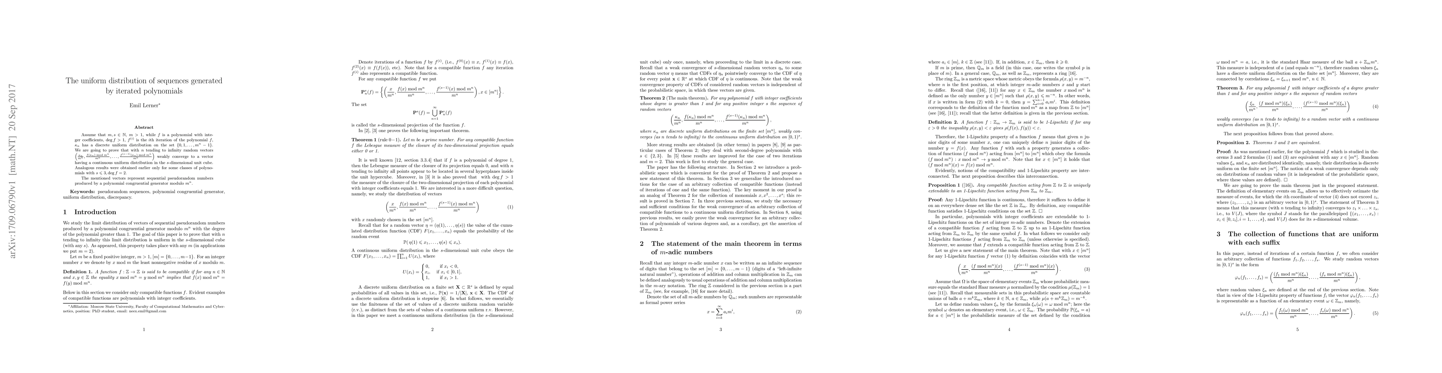 Researchers prove that sequences generated by iterated polynomials converge to a continuous uniform distribution as the number of iterations increases, leading to improved pseudorandom numbers.