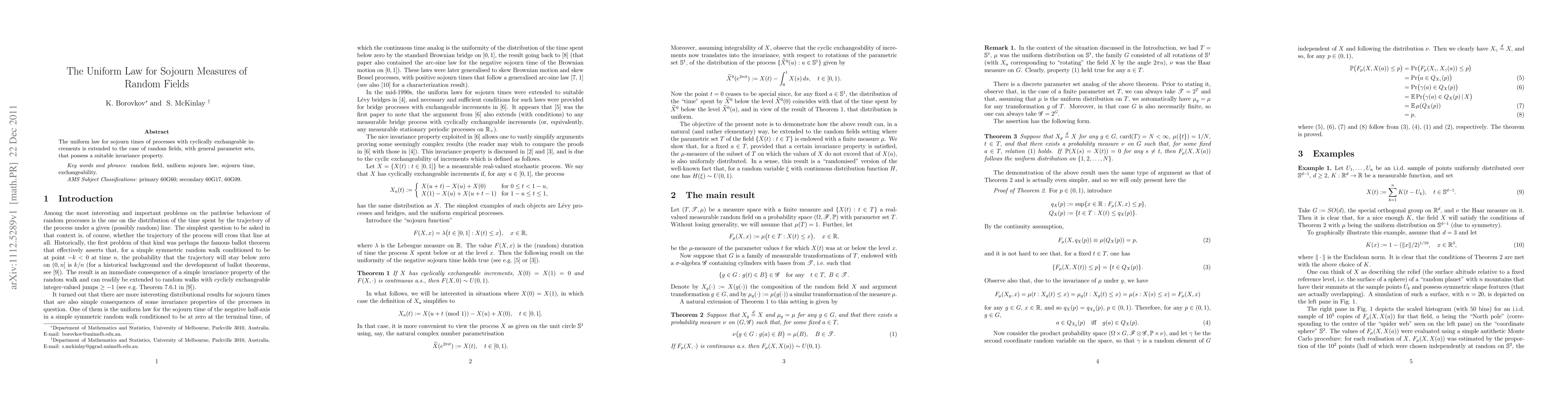 This paper extends a uniform law for sojourn times to random fields with general parameters, allowing for cyclically exchangeable increments.
