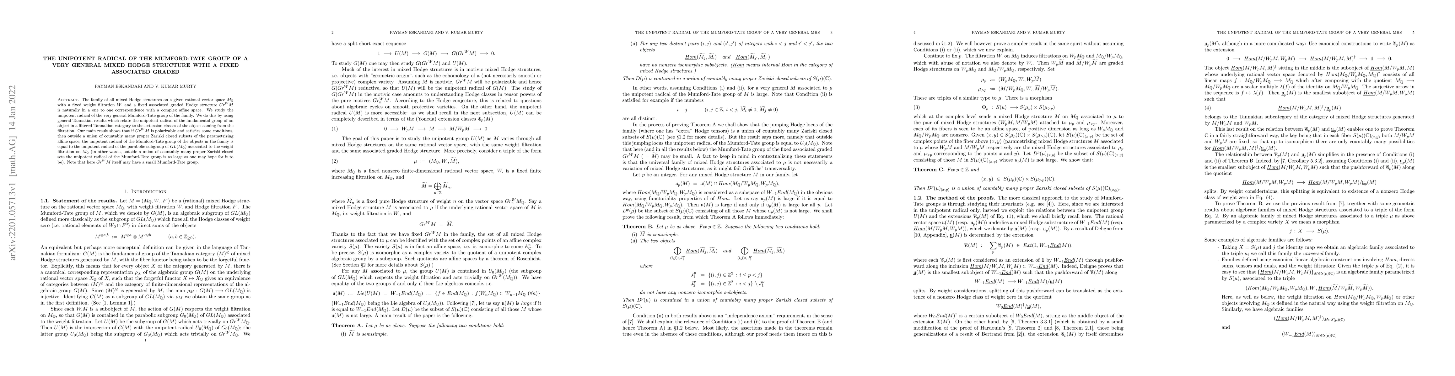 The family of all mixed Hodge structures on a given rational vector space $M_\mathbb{Q}$ with a fixed weight filtration $W_\cdot$ and a fixed associated graded Hodge structure $Gr^WM$ is naturally in a one to one correspondence with a complex affine space. We study the unipotent radical of the very general Mumford-Tate group of the family. We do this by using general Tannakian results which relate the unipotent radical of the fundamental group of an object in a filtered Tannakian category to the extension classes of the object coming from the filtration. Our main result shows that if $Gr^WM$ is polarizable and satisfies some conditions, then outside a union of countably many proper Zariski closed subsets of the parametrizing affine space, the unipotent radical of the Mumford-Tate group of the objects in the family is equal to the unipotent radical of the parabolic subgroup of $GL(M_\mathbb{Q})$ associated to the weight filtration on $M_\mathbb{Q}$ (in other words, outside a union of countably many proper Zariski closed sets the unipotent radical of the Mumford-Tate group is as large as one may hope for it to be). Note that here $Gr^WM$ itself may have a small Mumford-Tate group.