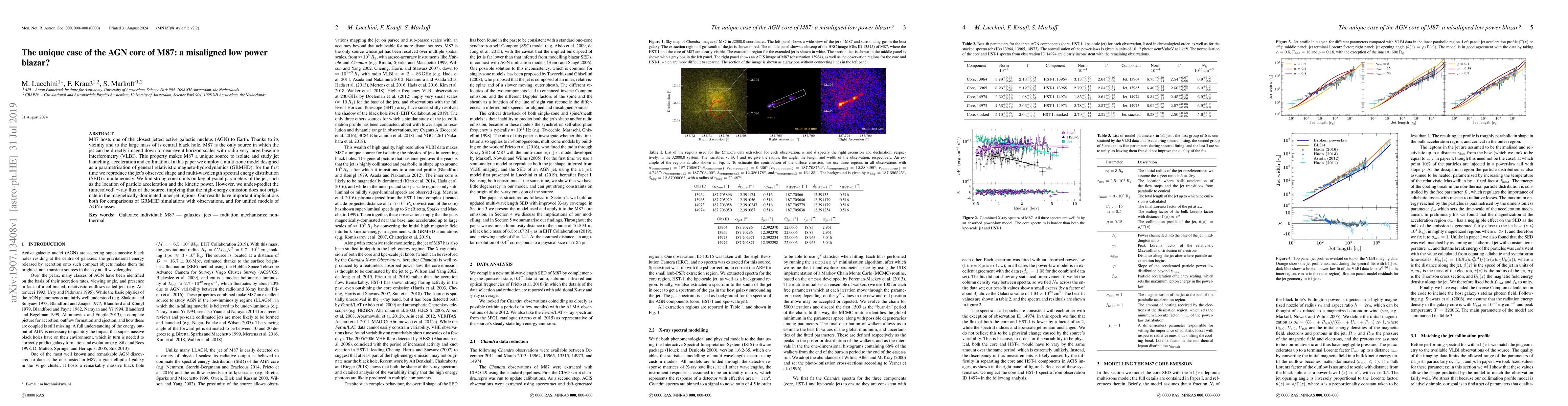 Researchers used a new model to study the unique case of M87's AGN core, finding that high-energy emission does not originate in the inner jet regions but rather elsewhere, with implications for unified models of AGN classes.